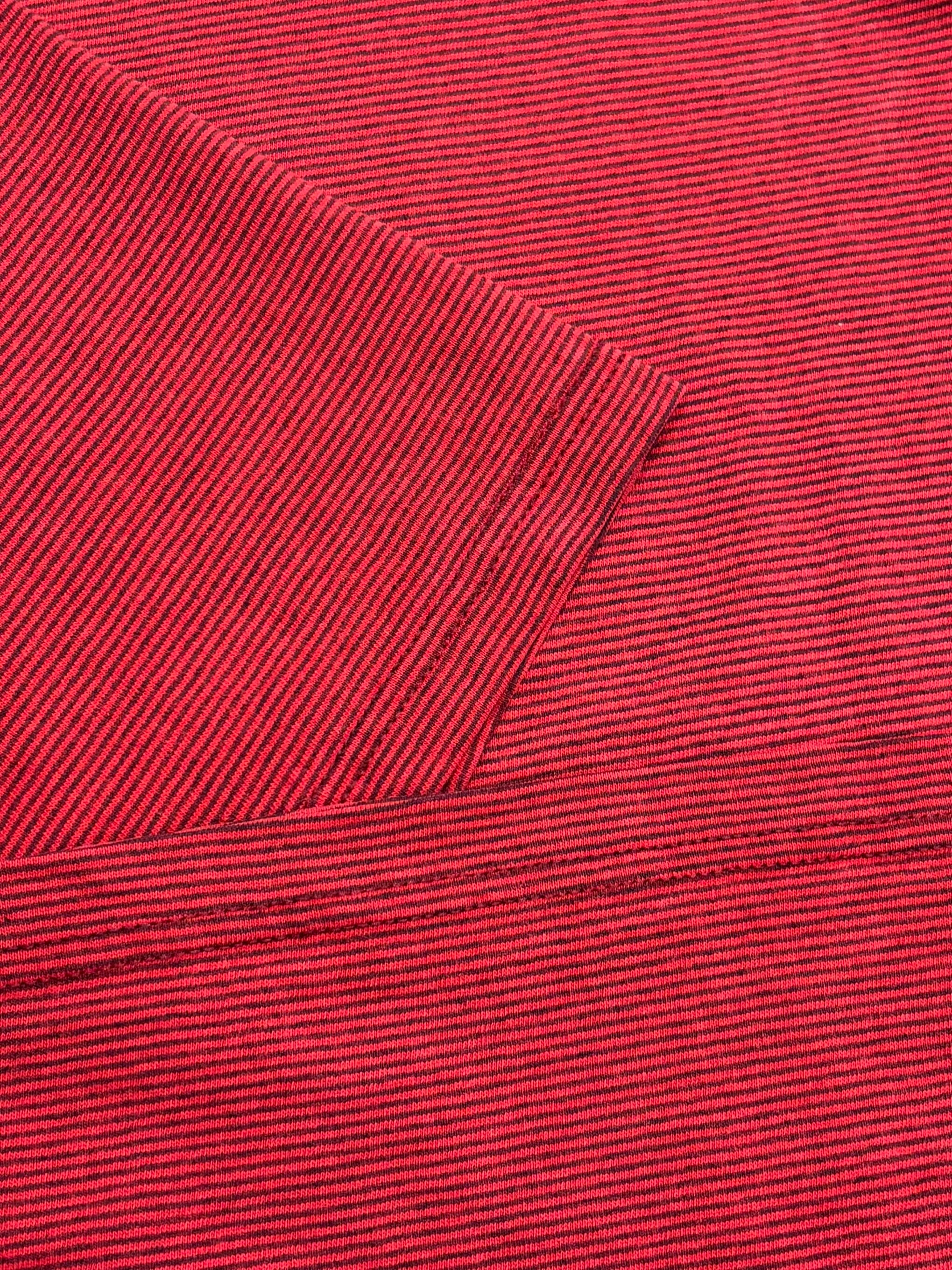 レッドベースに細かいブラックのラインで構成された1着