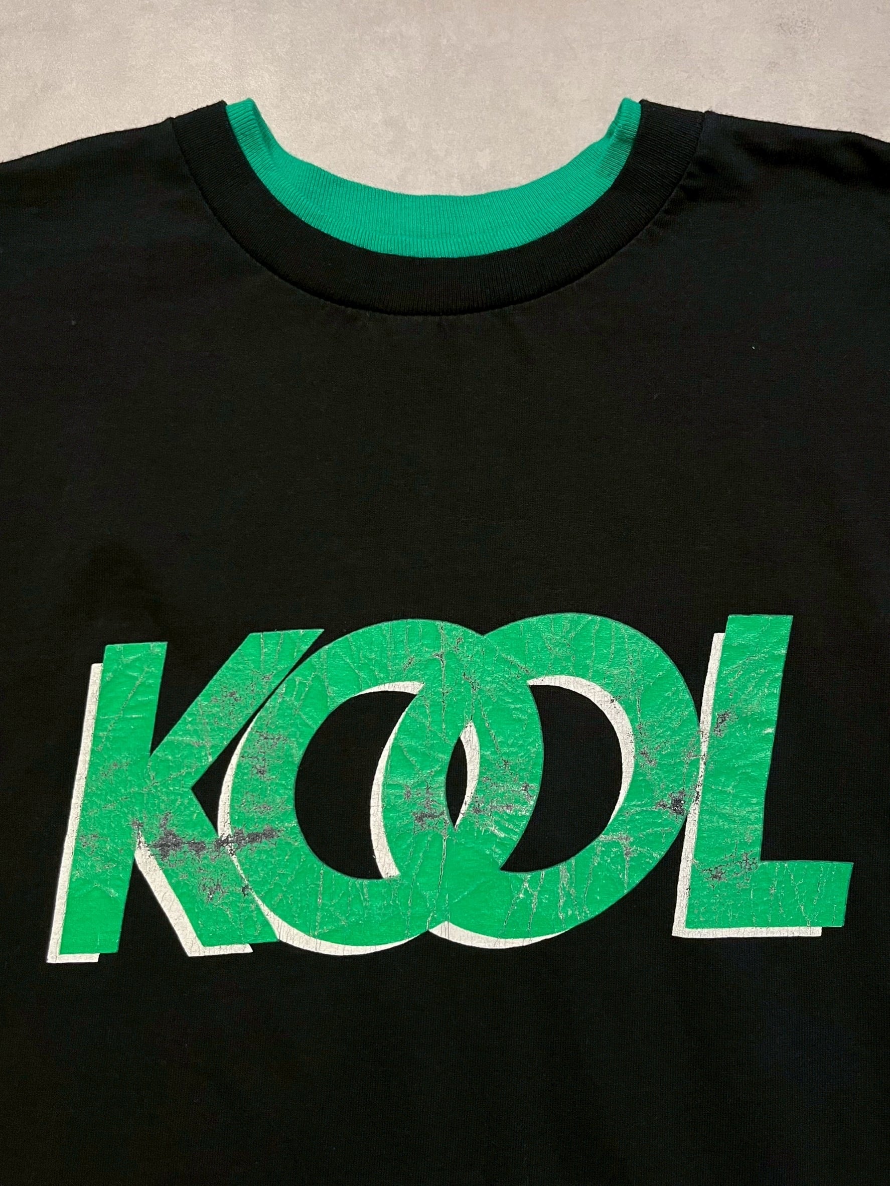 グリーンの発色が特徴的なKOOLらしいカラーリングに加え、ブラックボディ×グリーンリブの切り替えが効いたデザイン、袖裏もグリーンになっており袖をまくるとアクセントになってくれます