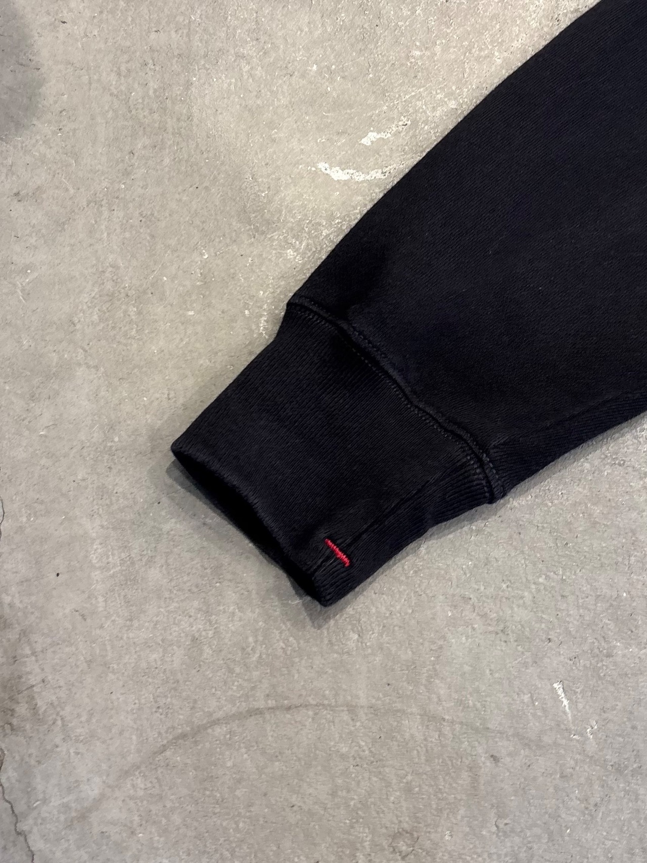 ブラックボディに対し赤いバータック、裾リブにタグなどこだわりを感じます