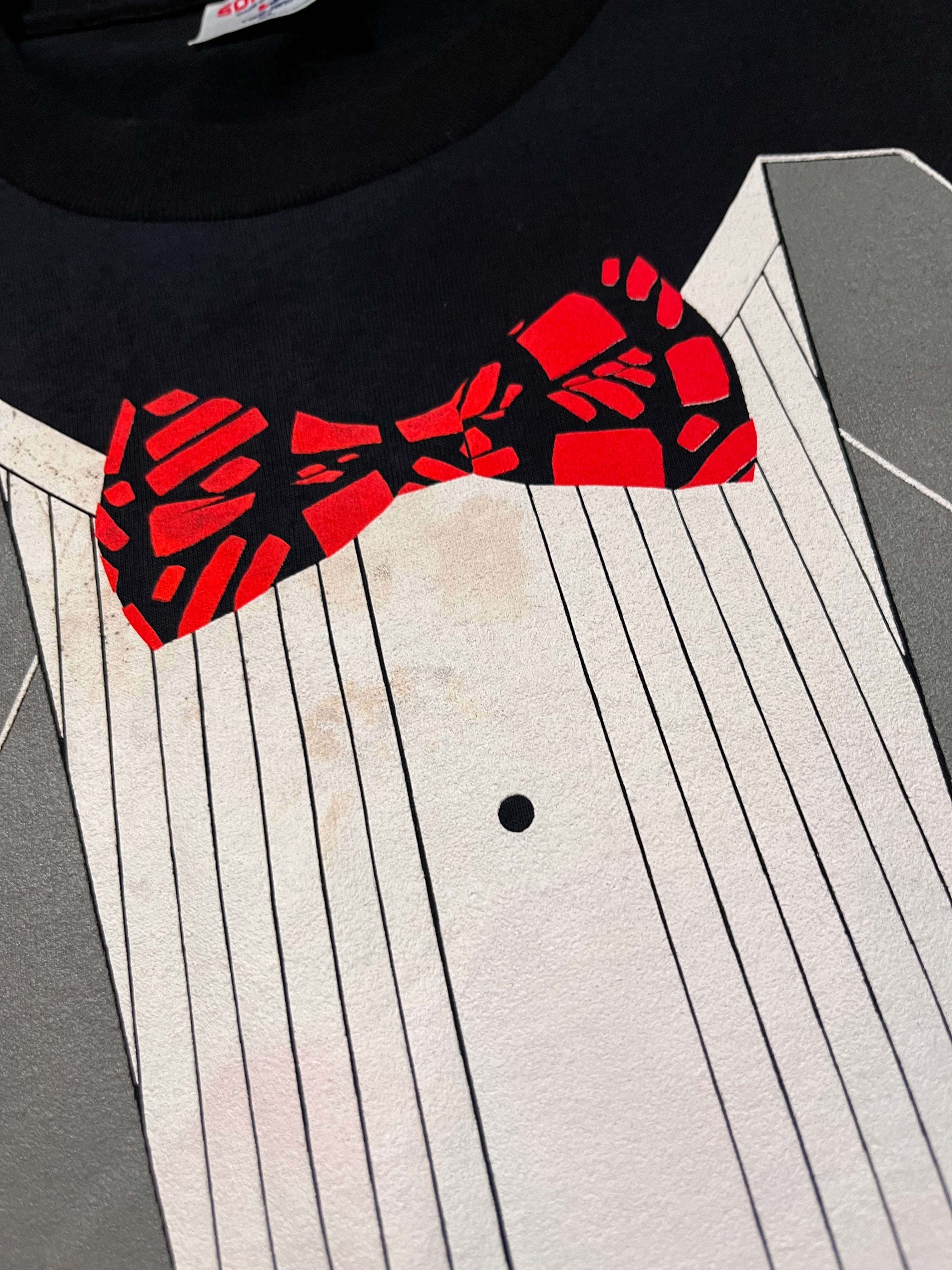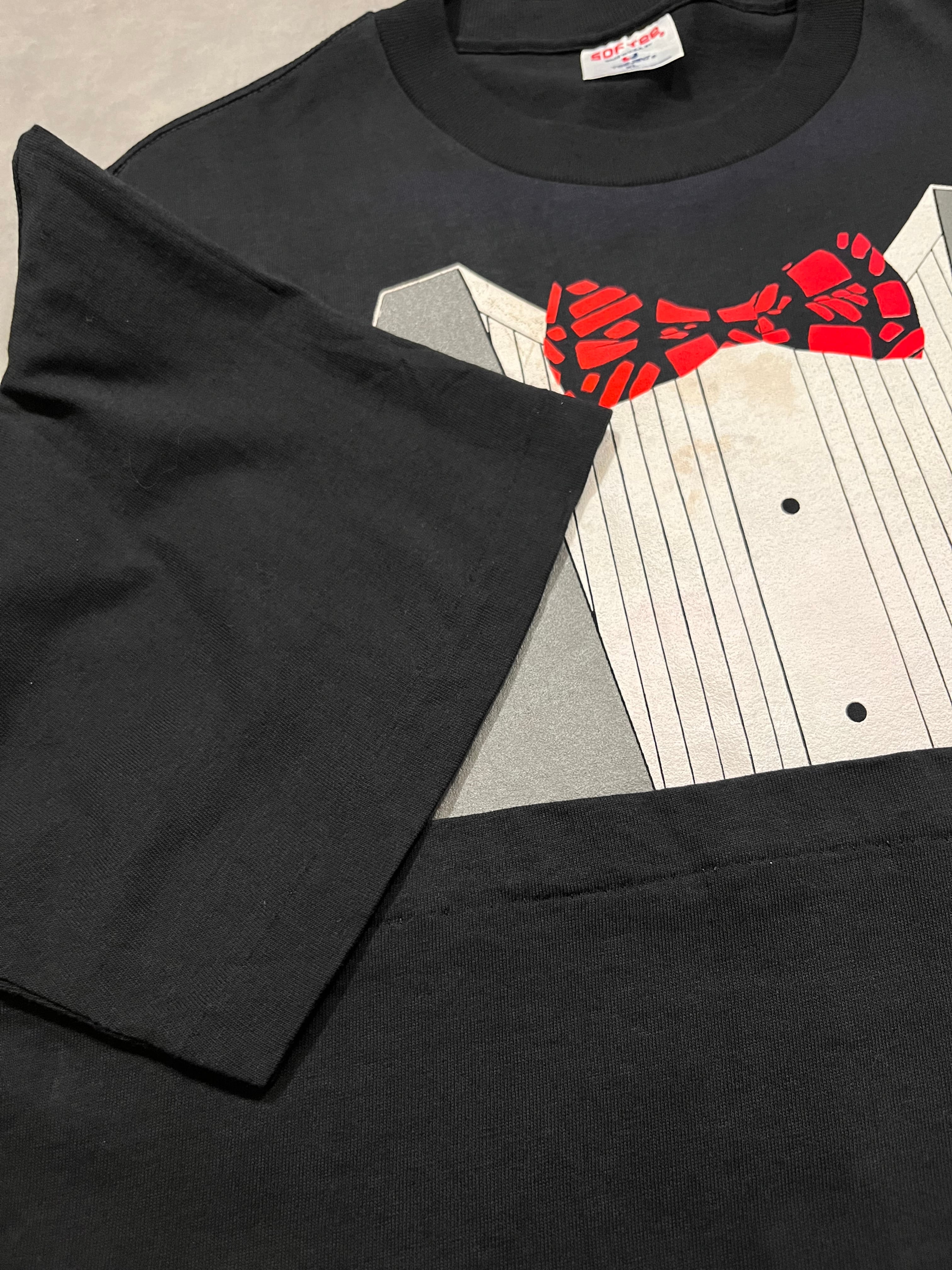 タキシードの騙し絵風のプリントTシャツ