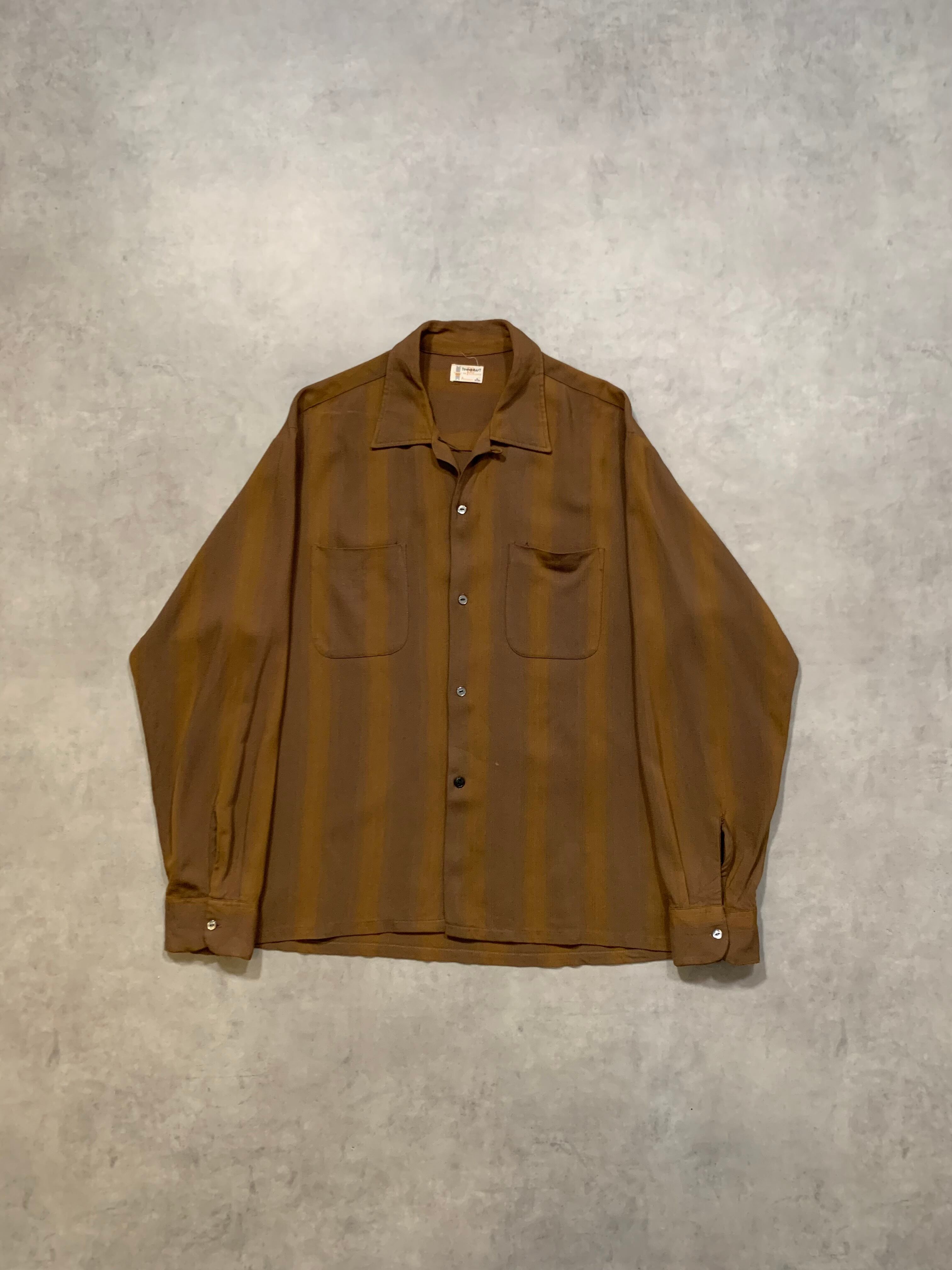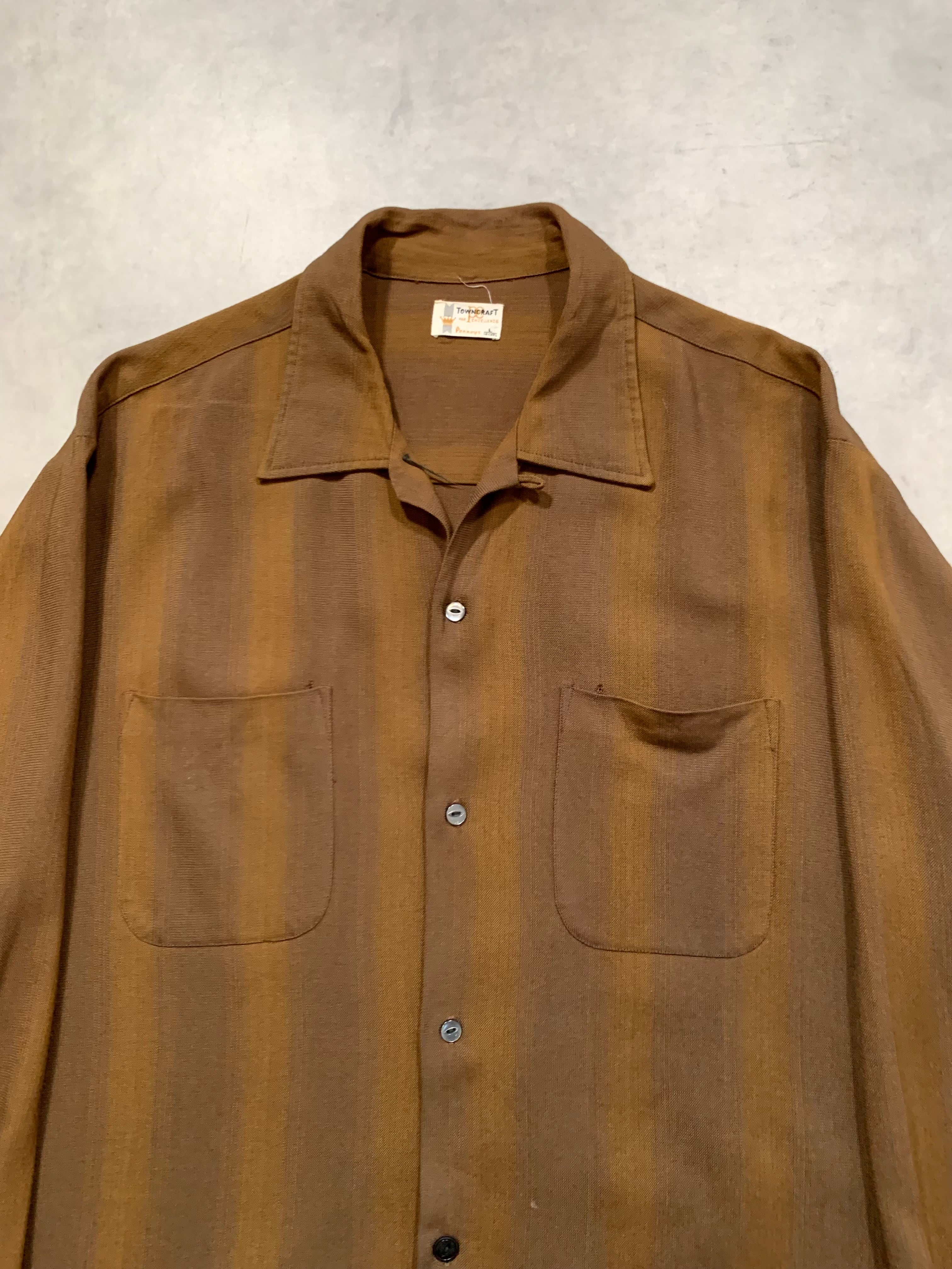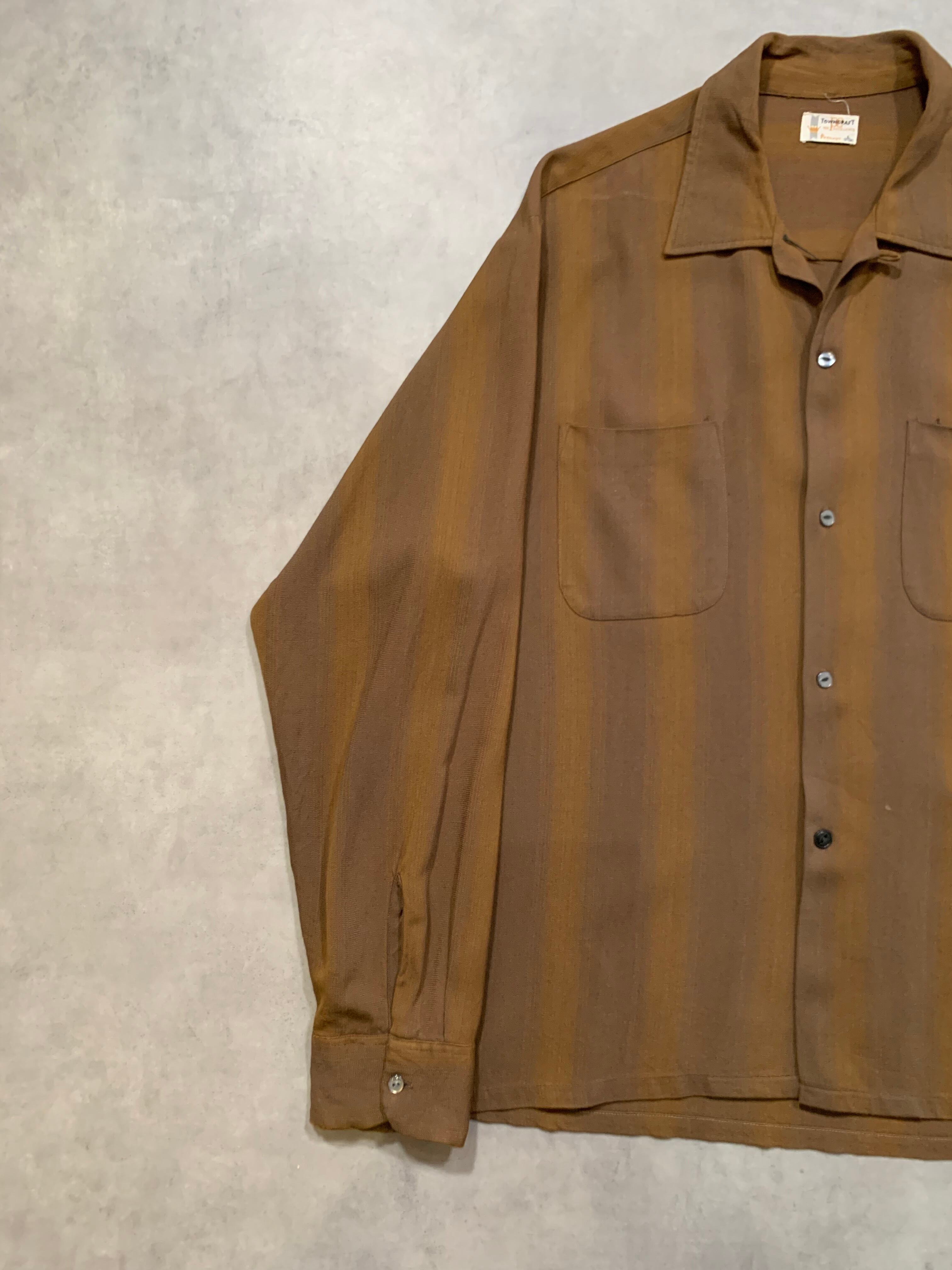60’s “TOWN CRAFT” L/S Open Collar Rayon Shirt STRIPE