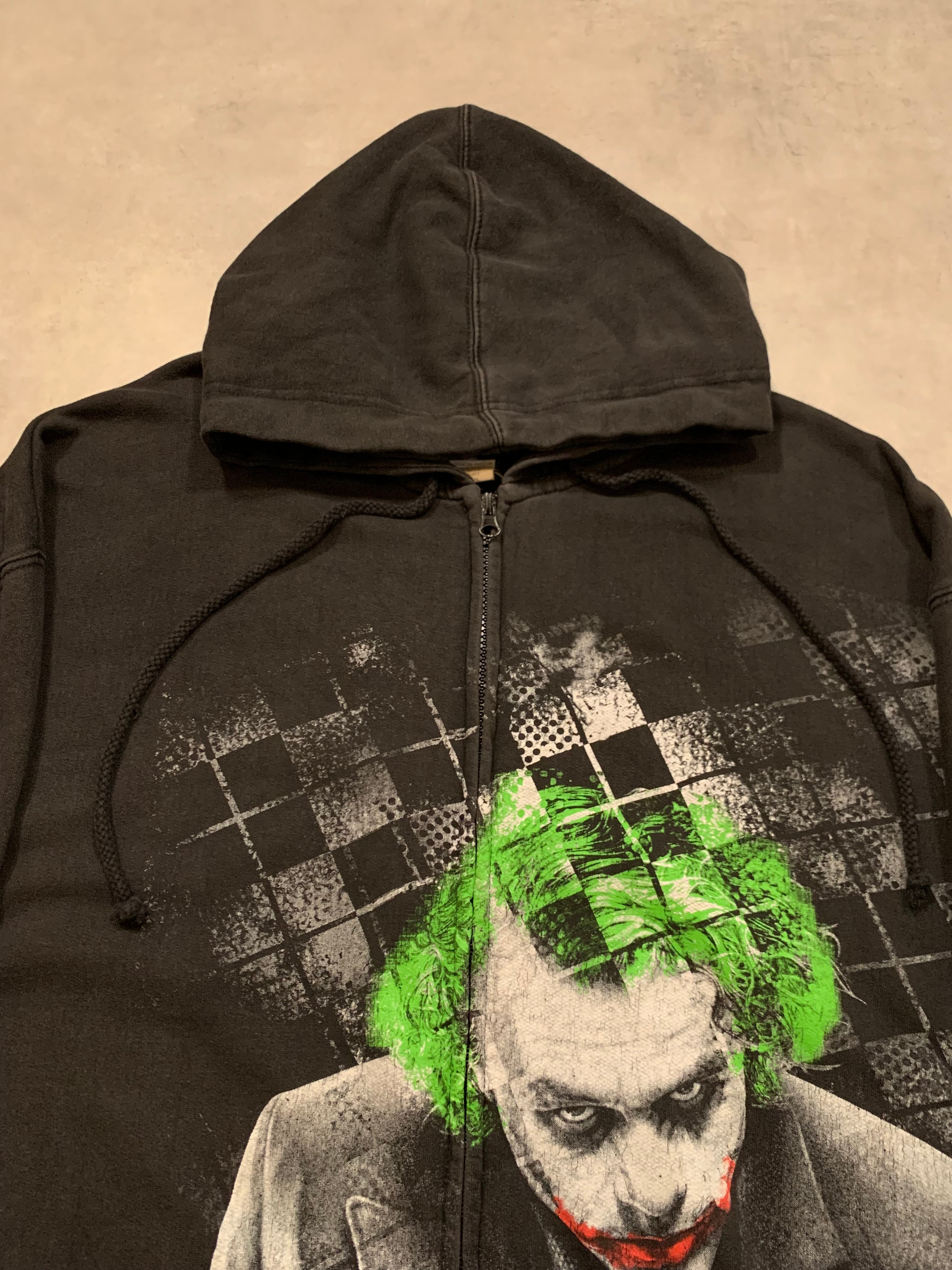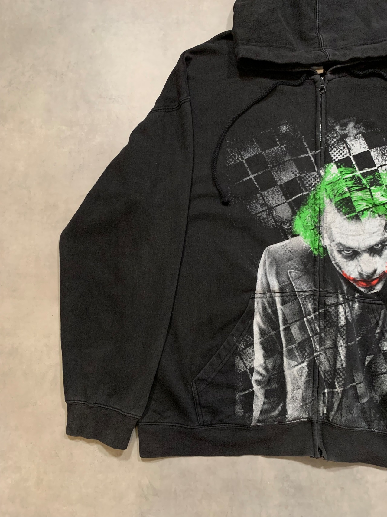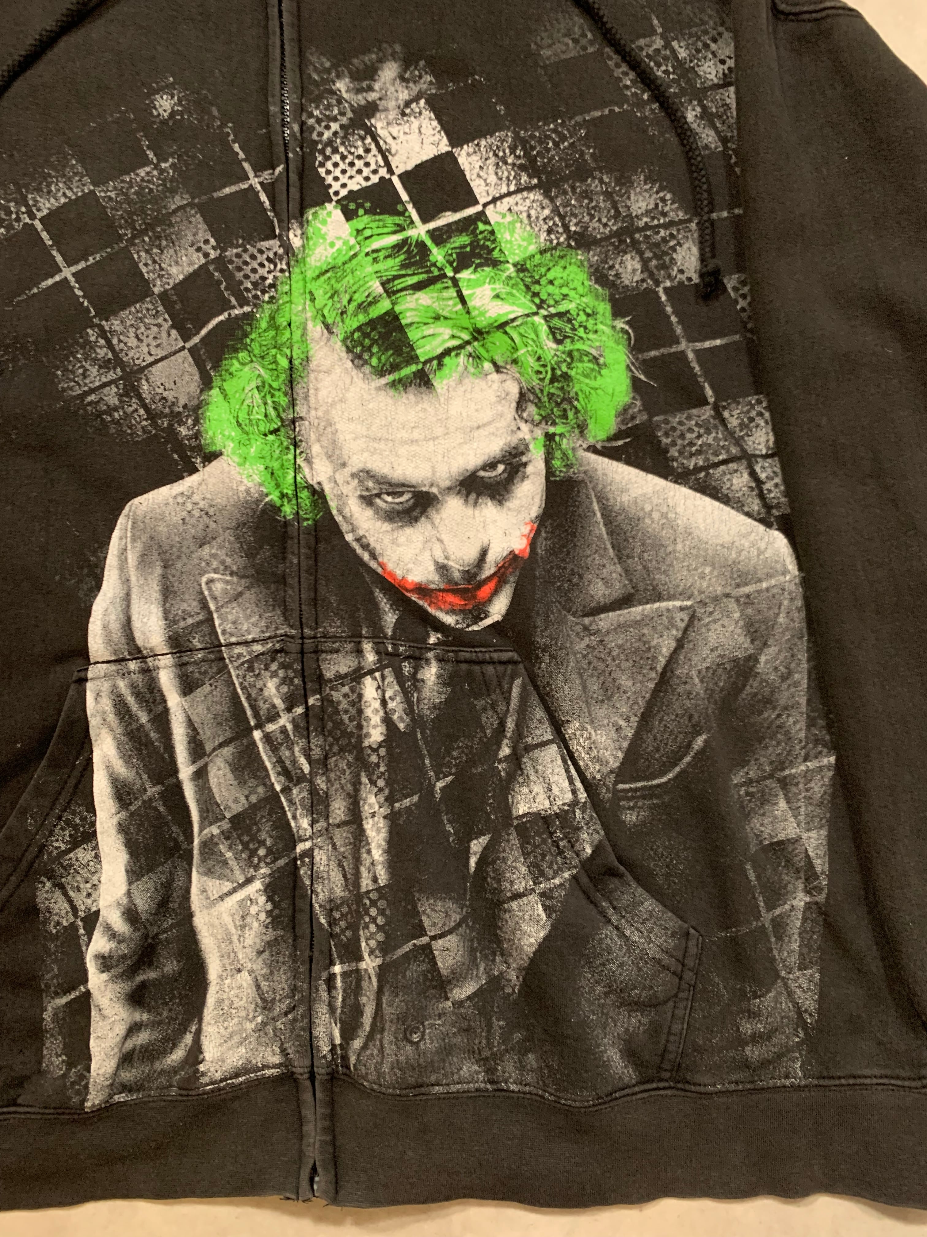大版プリントでジョーカーが描かれ、ジップを跨いでプリントされている点もインパクトのある仕様です