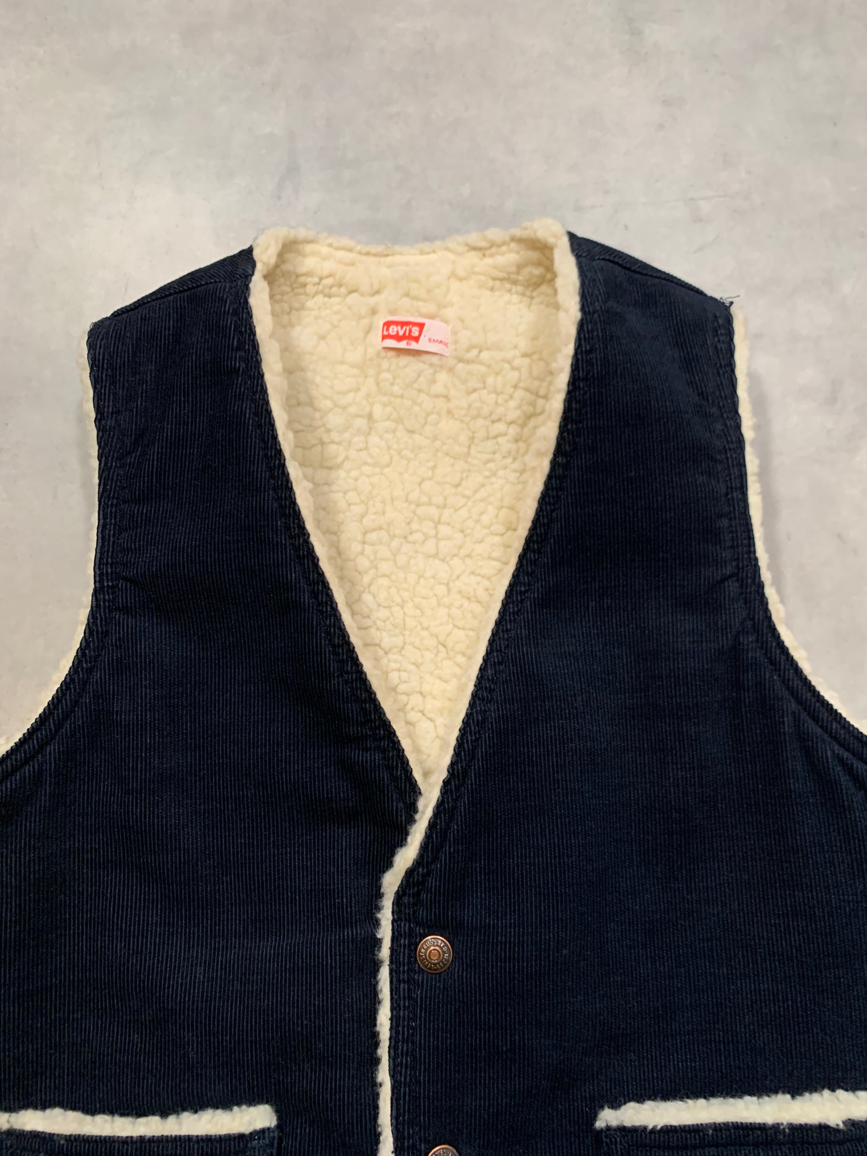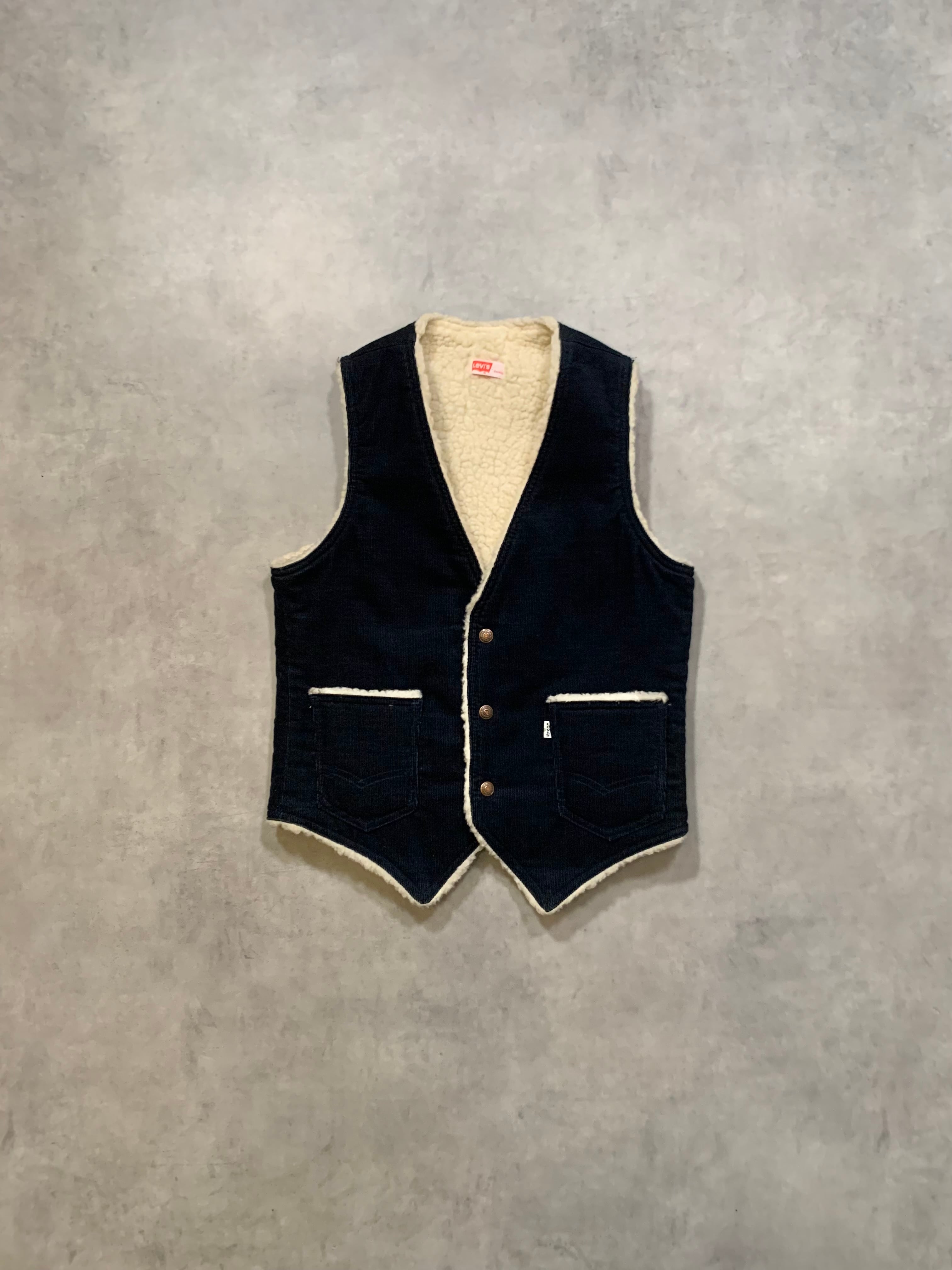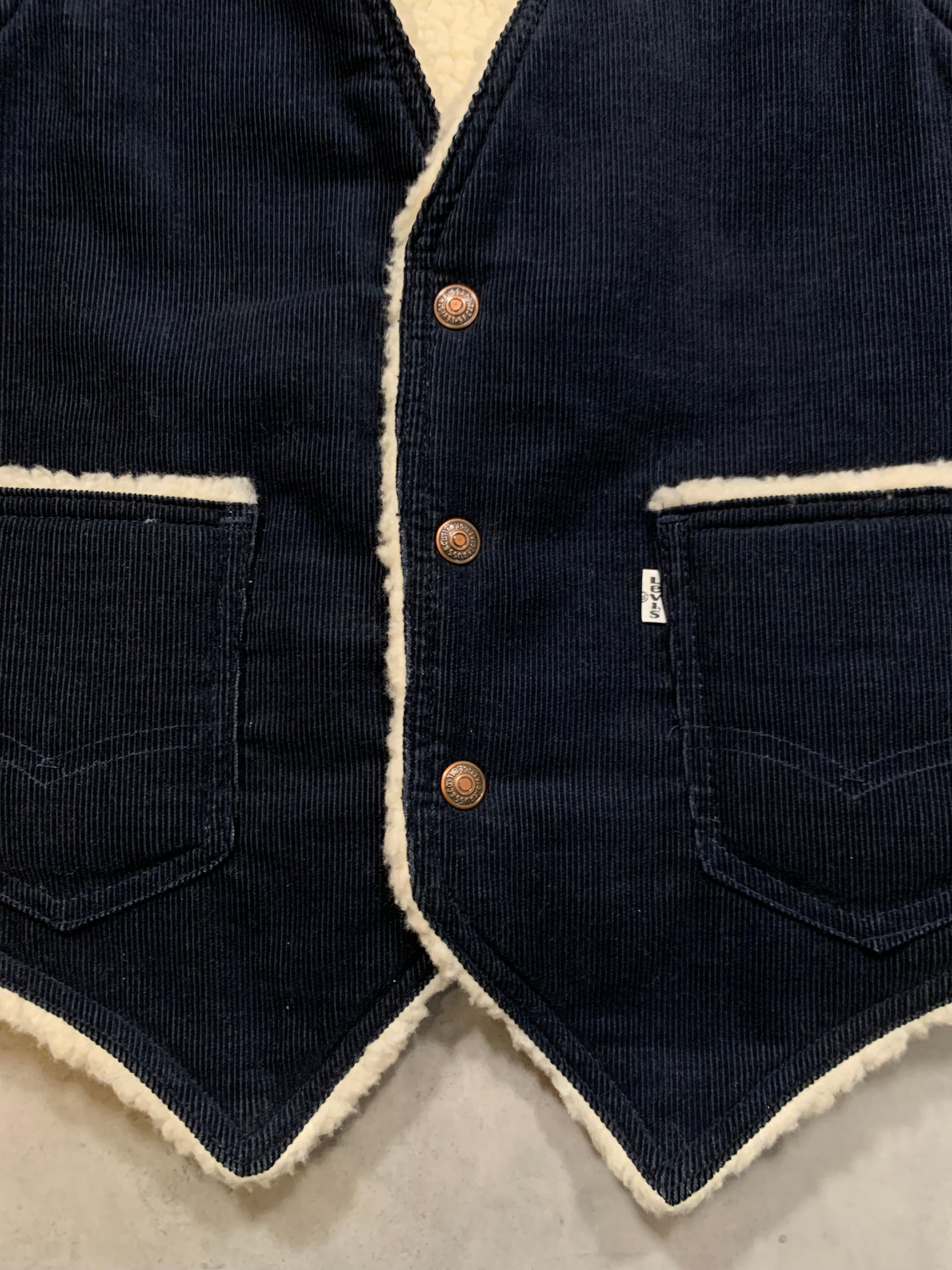 70’s “Levi’s” Corduroy Boa Vest GOOD CONDITION NAVY SMALL