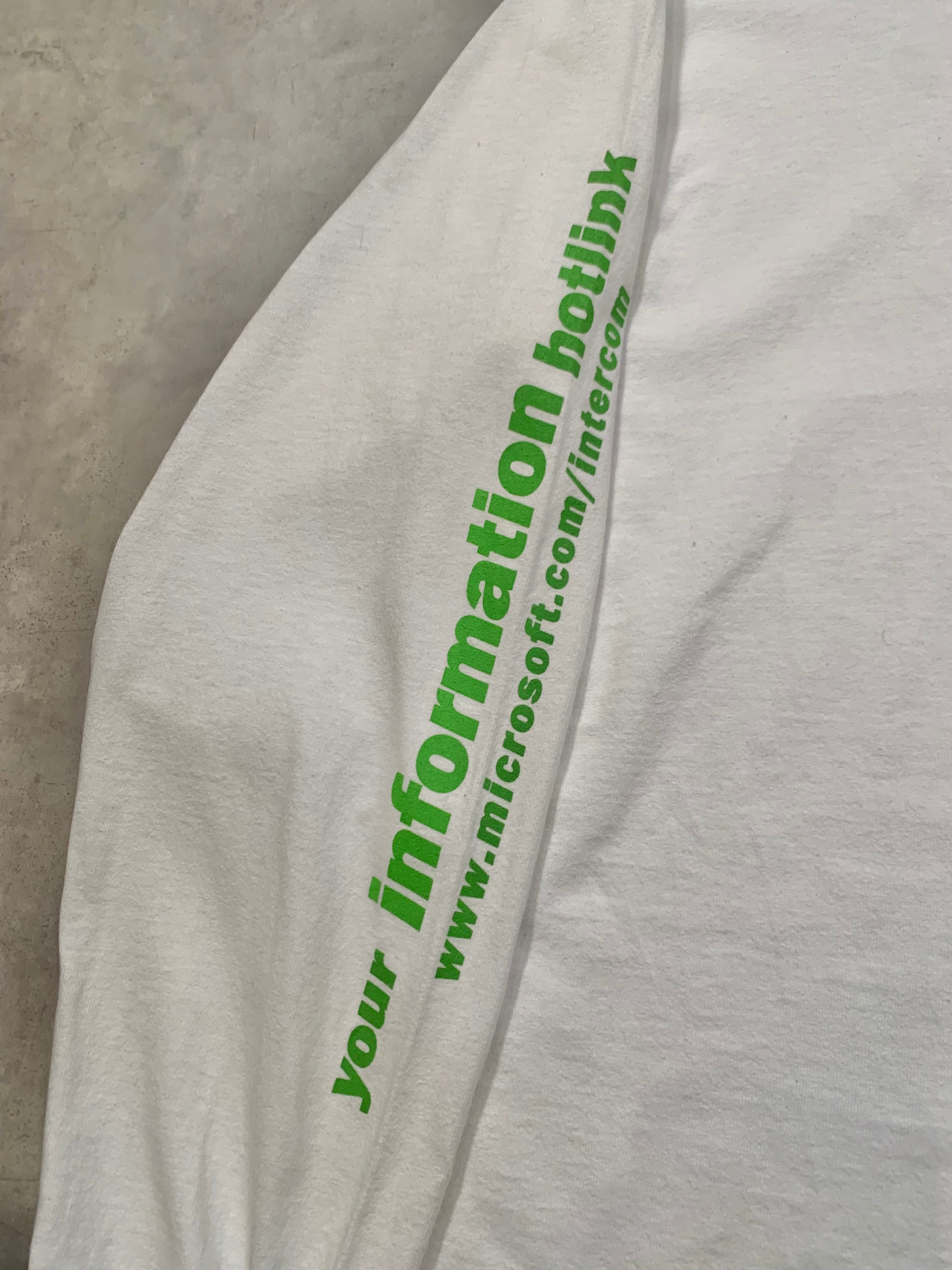 胸には「Microsoft intercom internet communications」のロゴ、袖には「your information hotlink www.microsoft.com/intercom」と入る当時のインターネット黎明期らしいデザインです