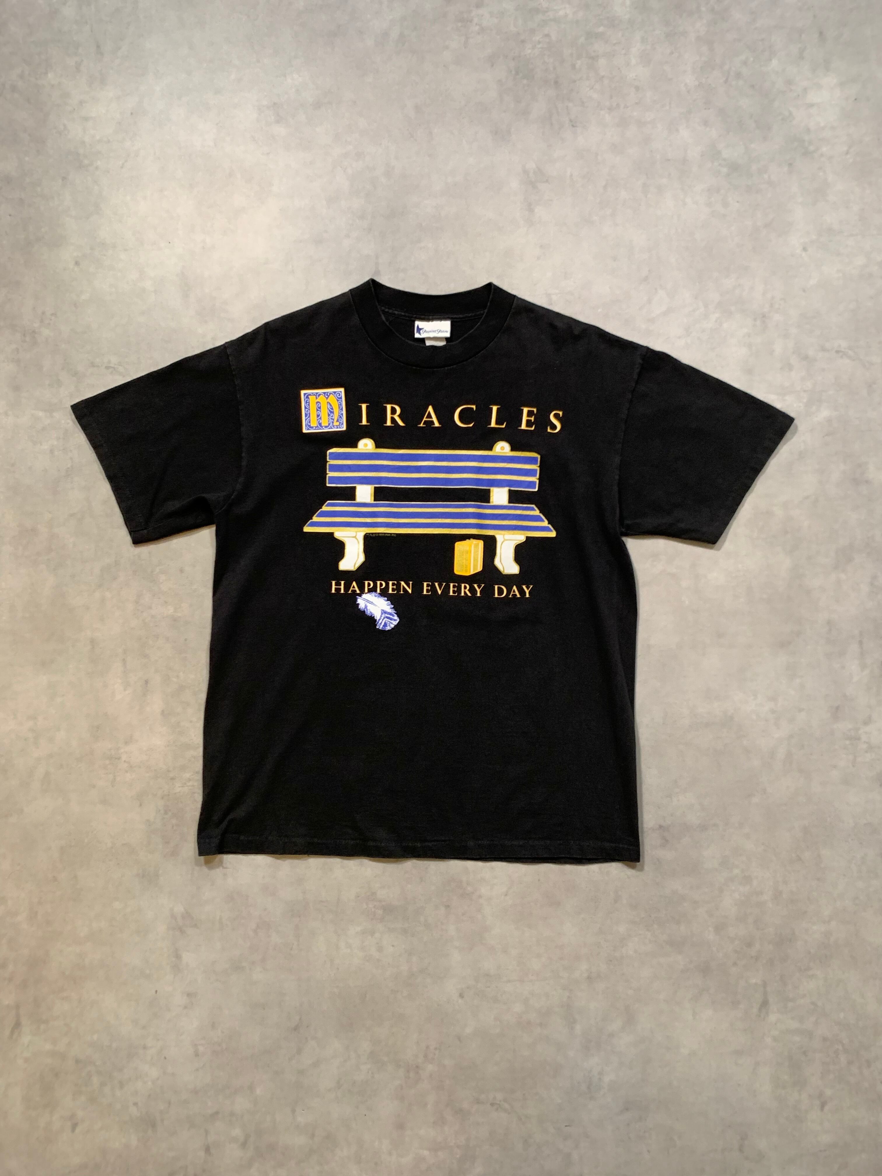 劇中でも印象的なベンチのシーンのプリントに、「Miracles happen every day(奇跡は毎日起こる)」のメッセージが入る1枚