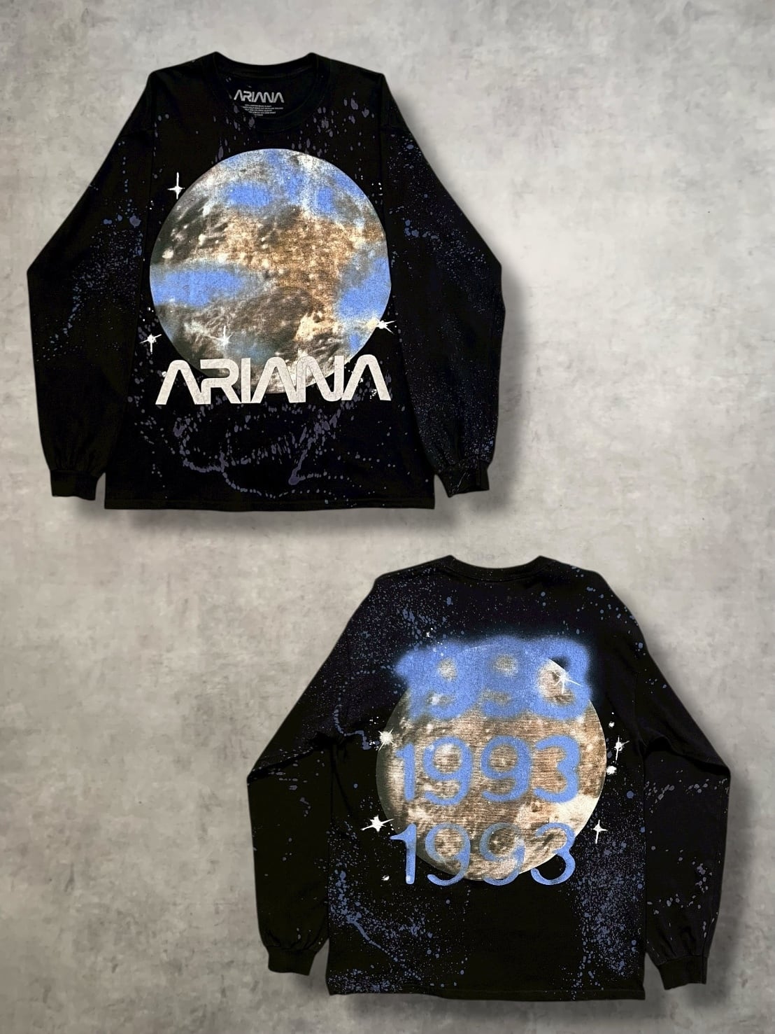 バックにはアリアナ・グランデの生まれ年「1993」のナンバリングと月モチーフが入った両面プリント仕様