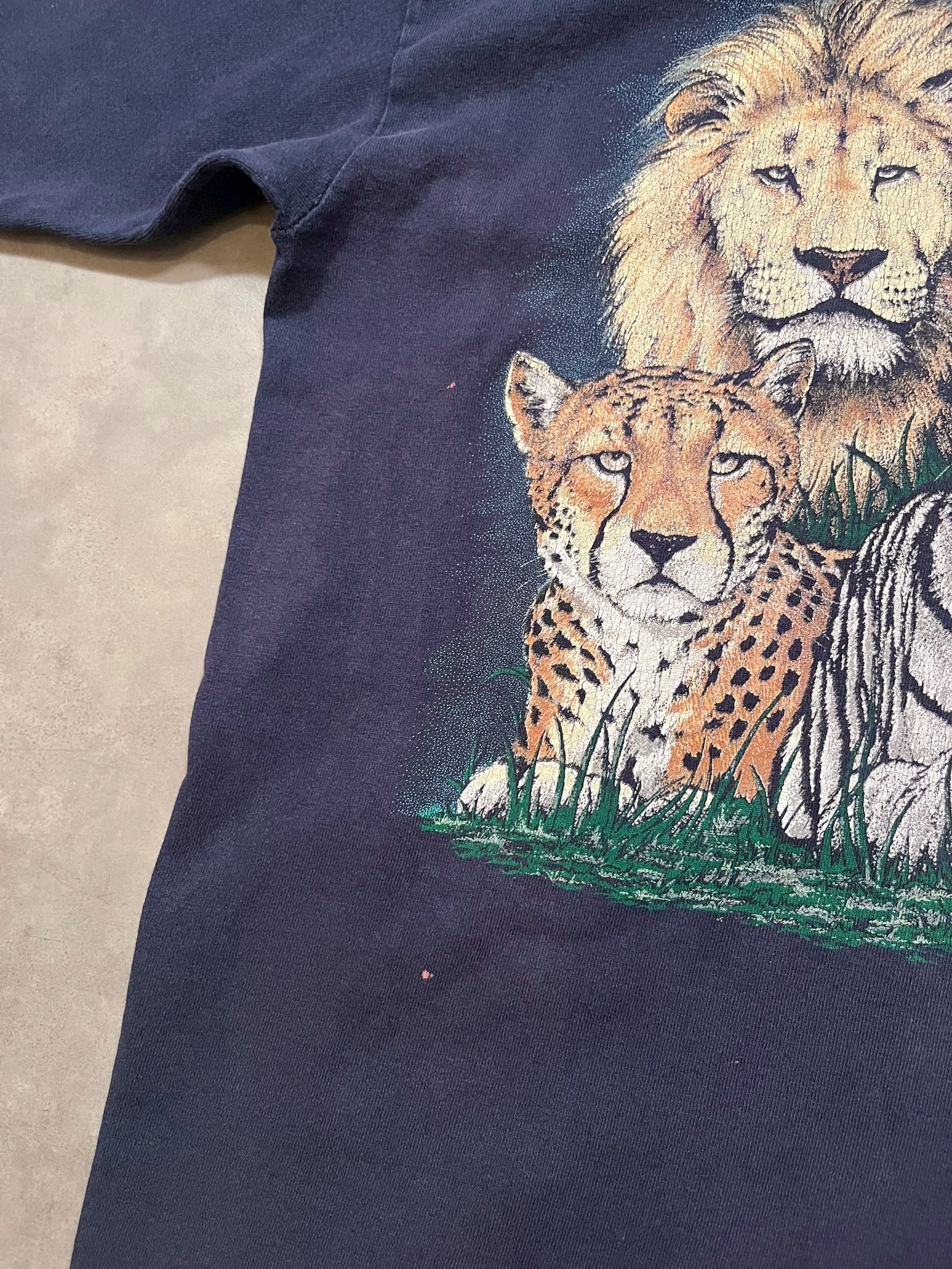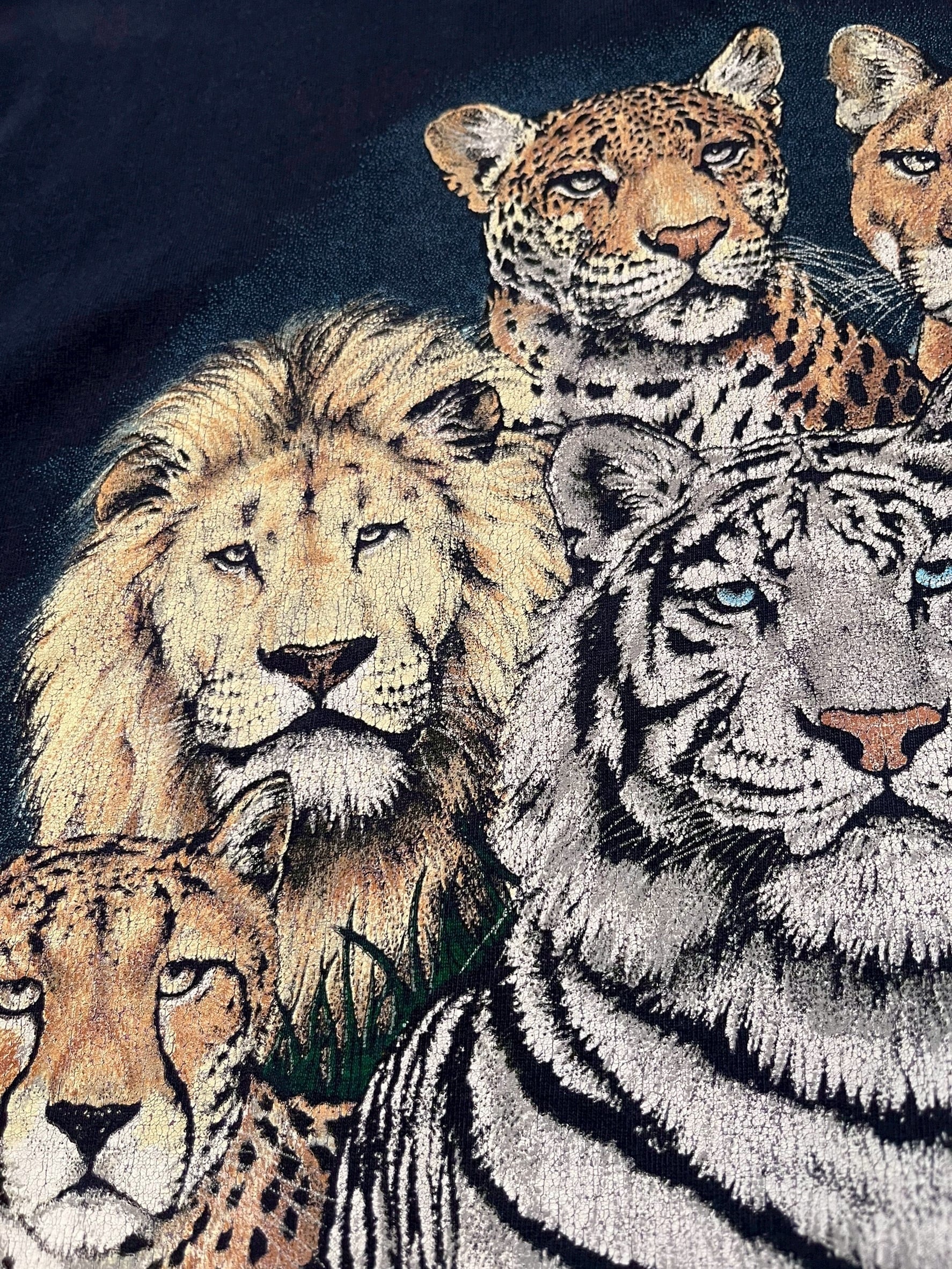 虎、ライオン、ヒョウなどが大版でプリントされたTシャツ