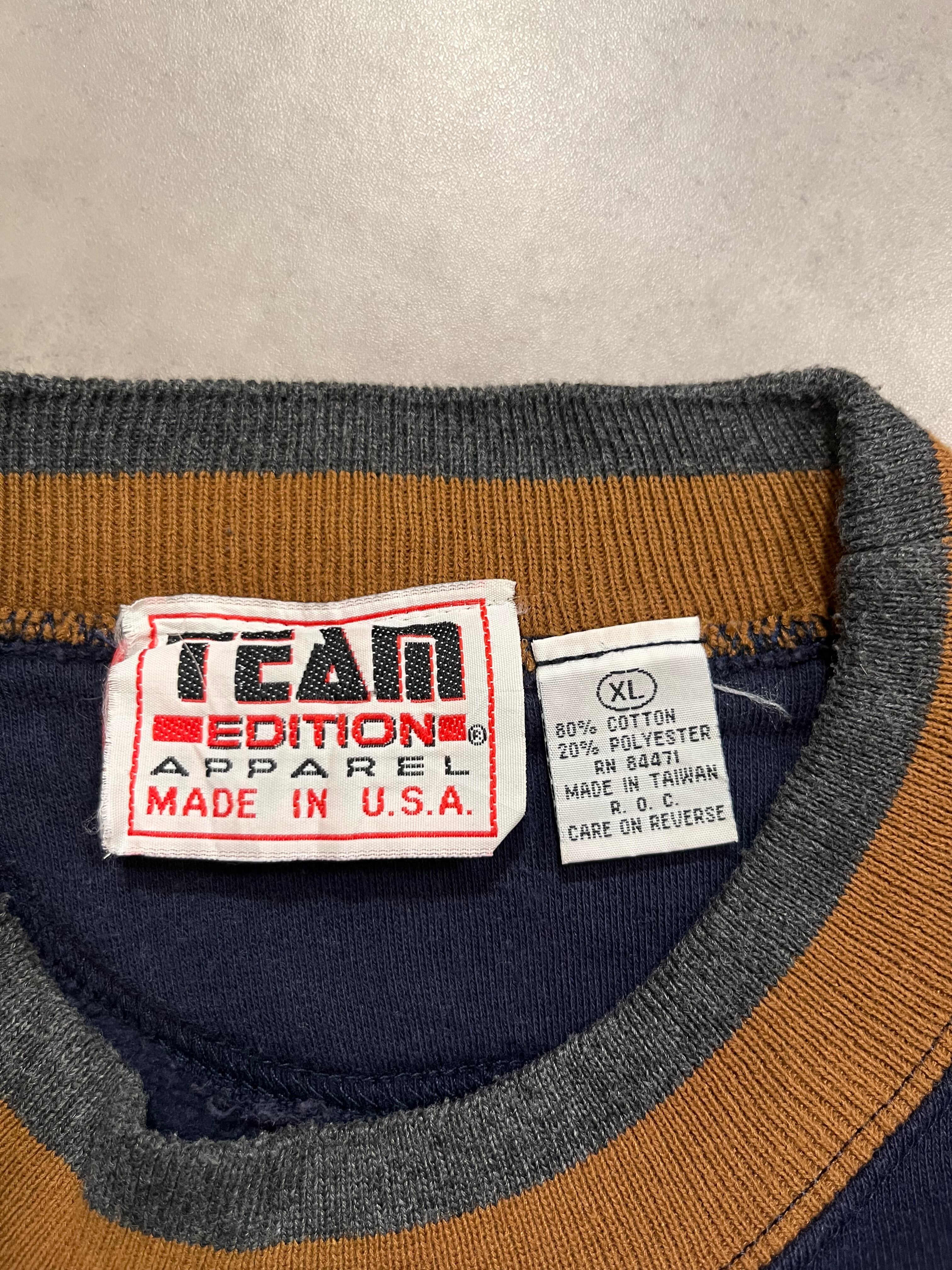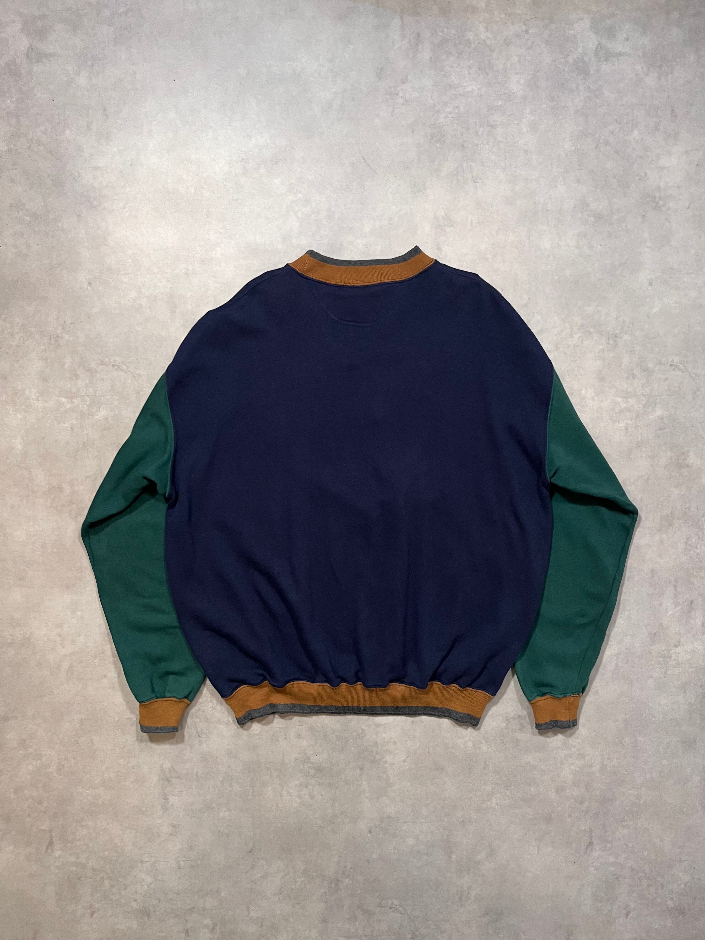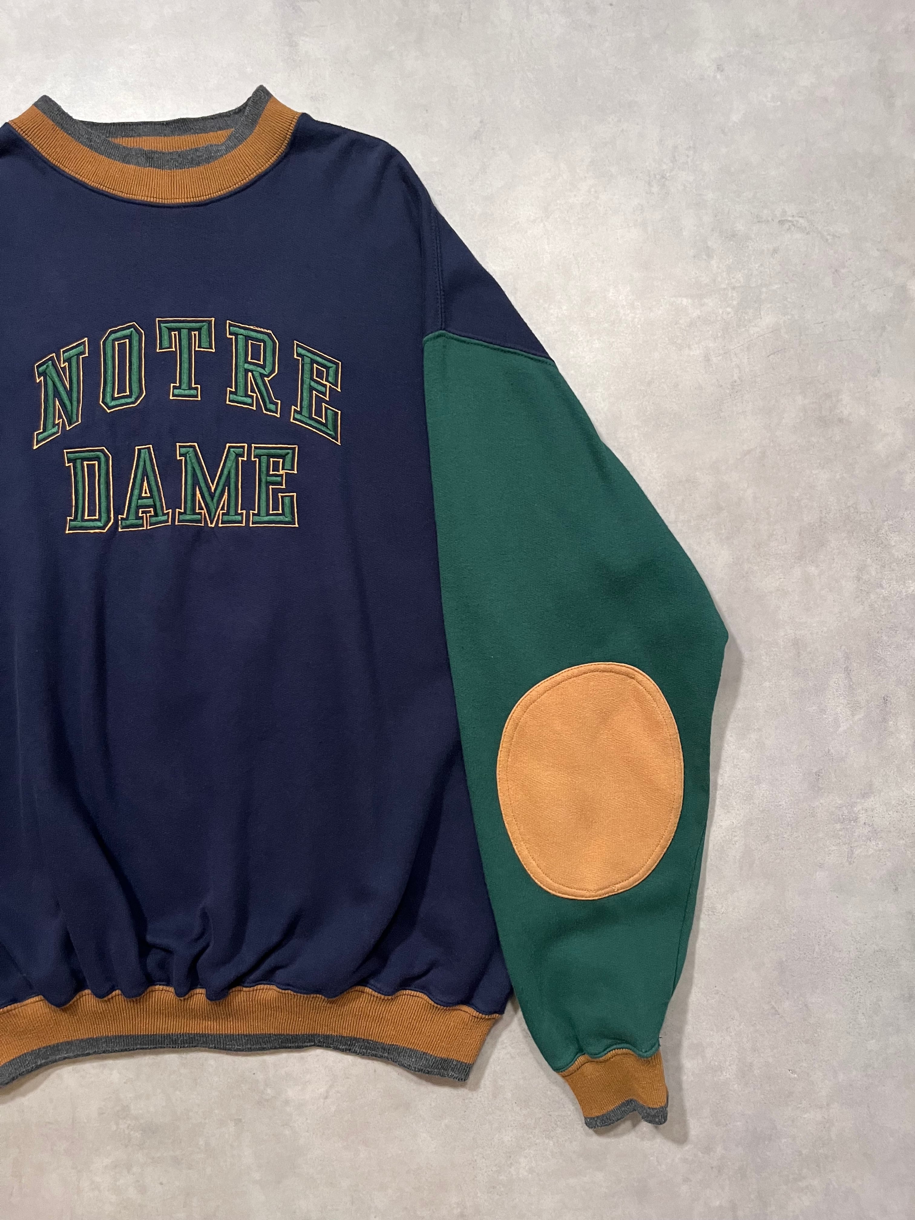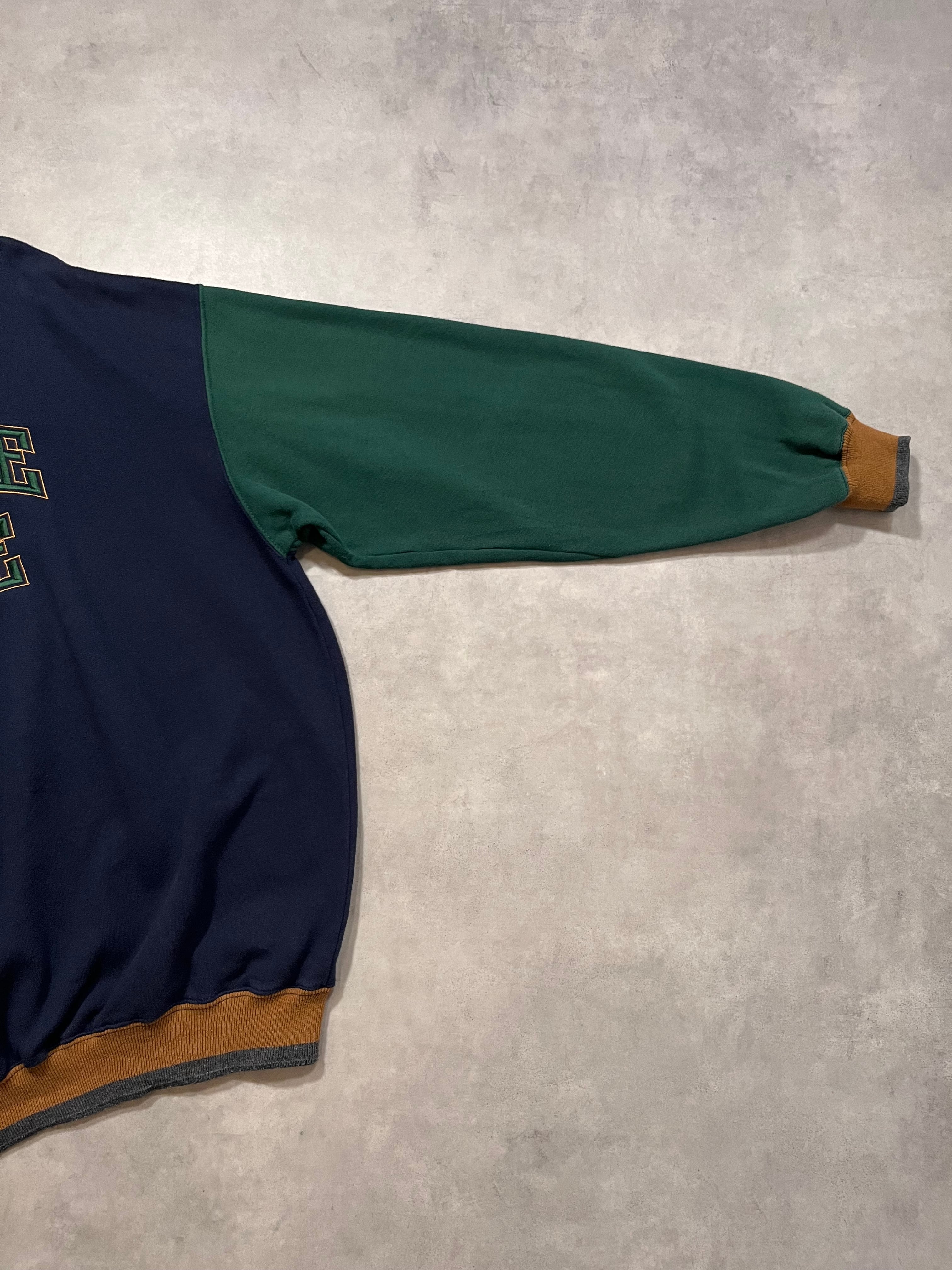 90’s “NOTRE DAME” Switching Design Sweat Shirt NAVY×GREEN×BEIGE
