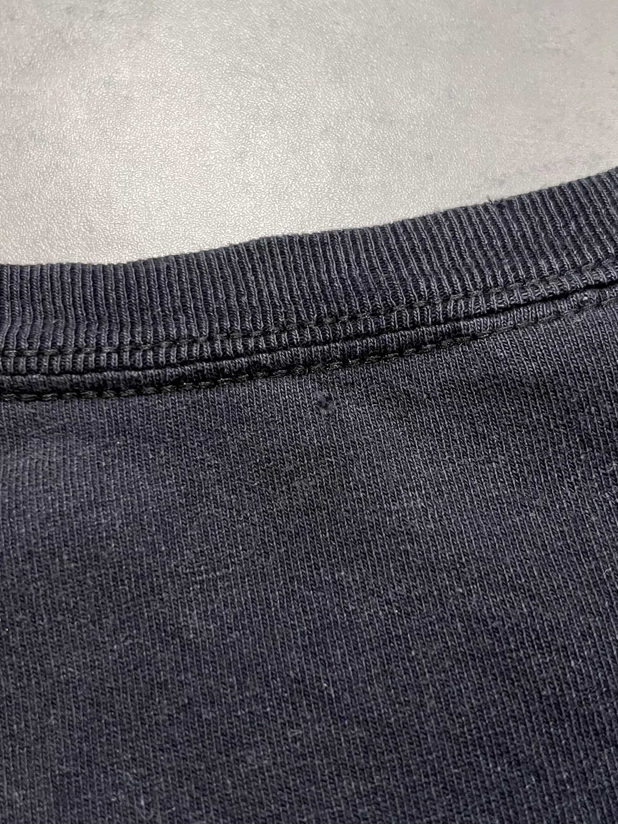 フロントのプリント横、左脇あたり、バックの襟リブ下にピンホール