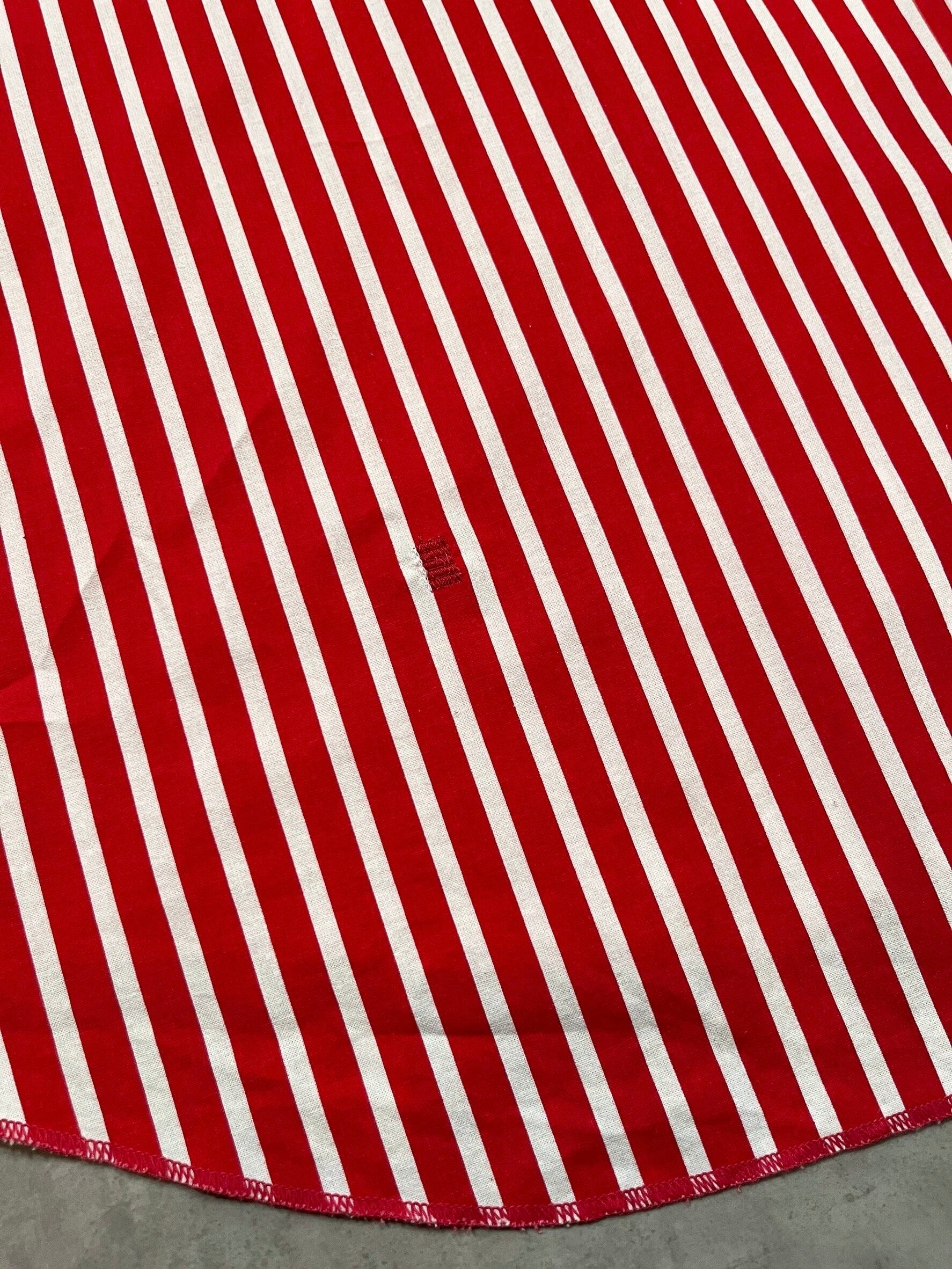 レッド×ホワイトのインパクトあるストライプ柄が目を引きます