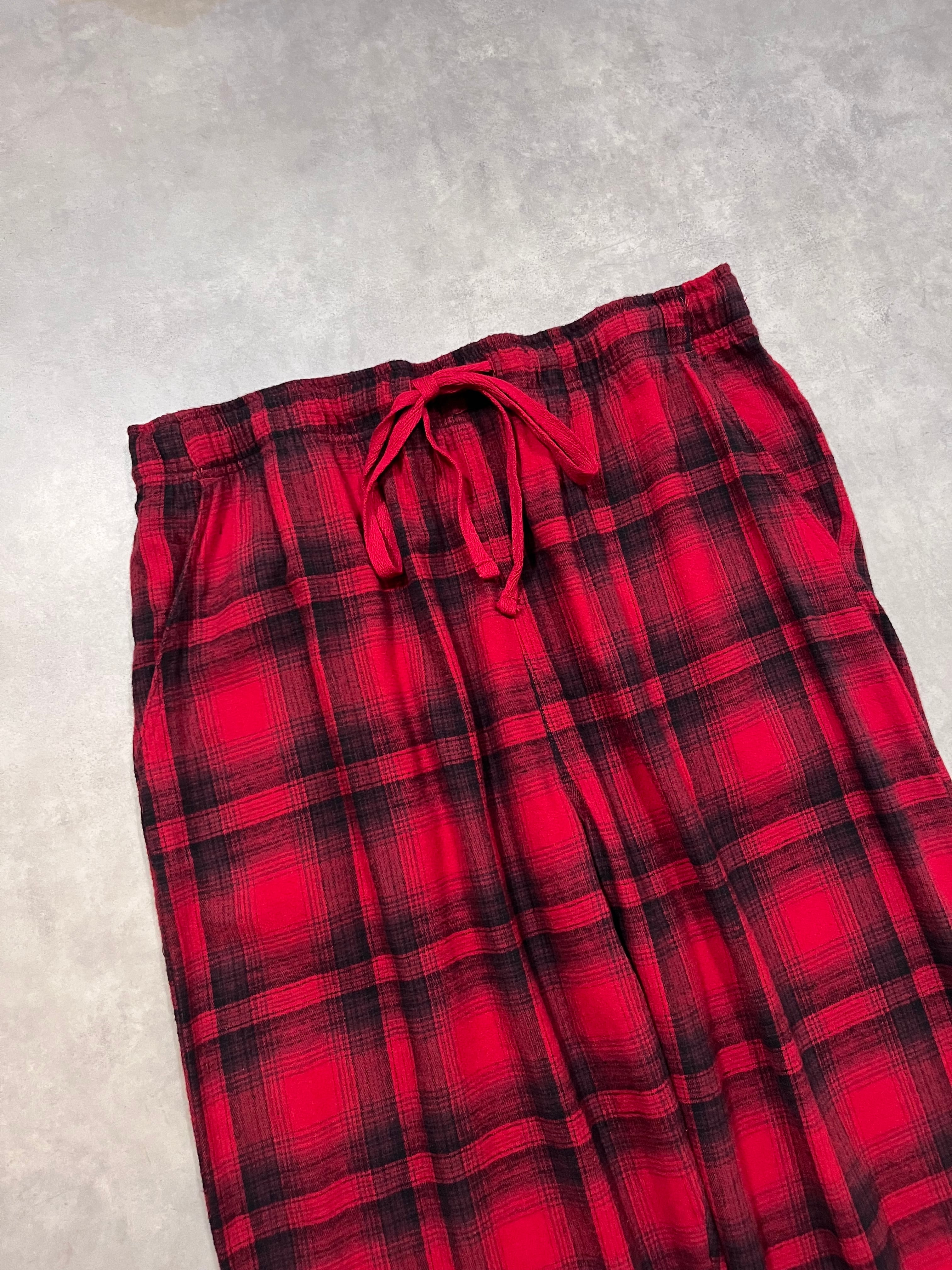 起毛感があって柔らかいフランネル素材を使用したチェック柄のイージーパンツです