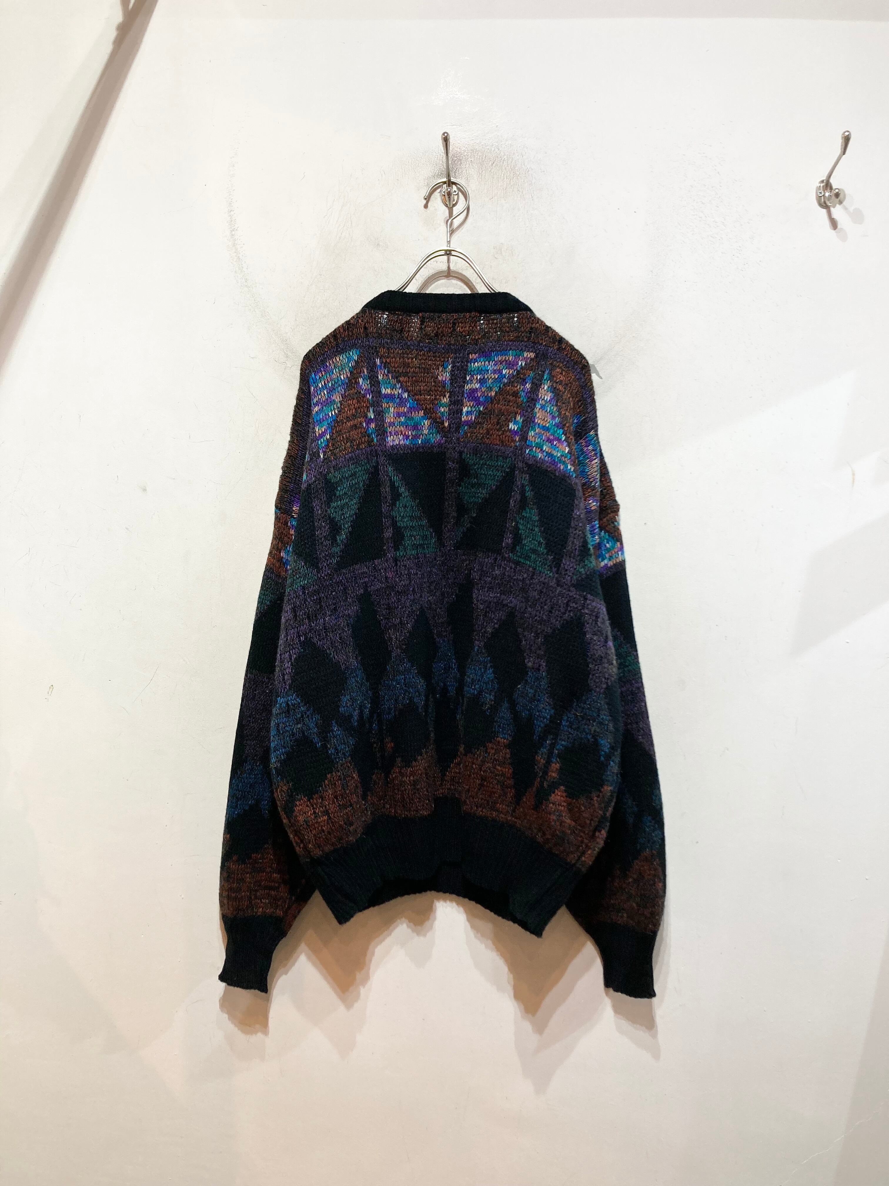 抽象的な柄を編みで表現した1着