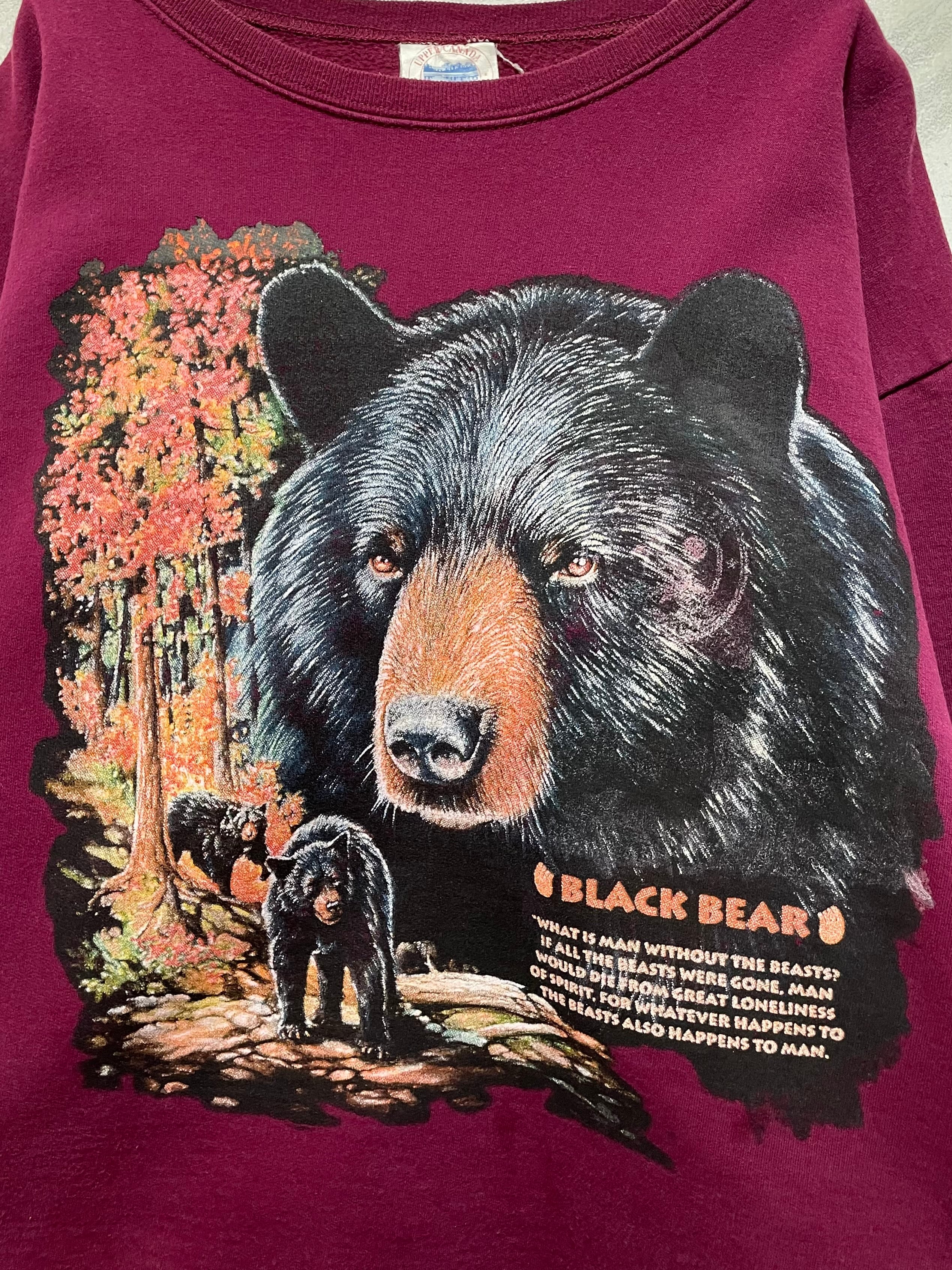 90's “BLACK BEAR” Animal Print Sweat Shirt「Made in CANADA」