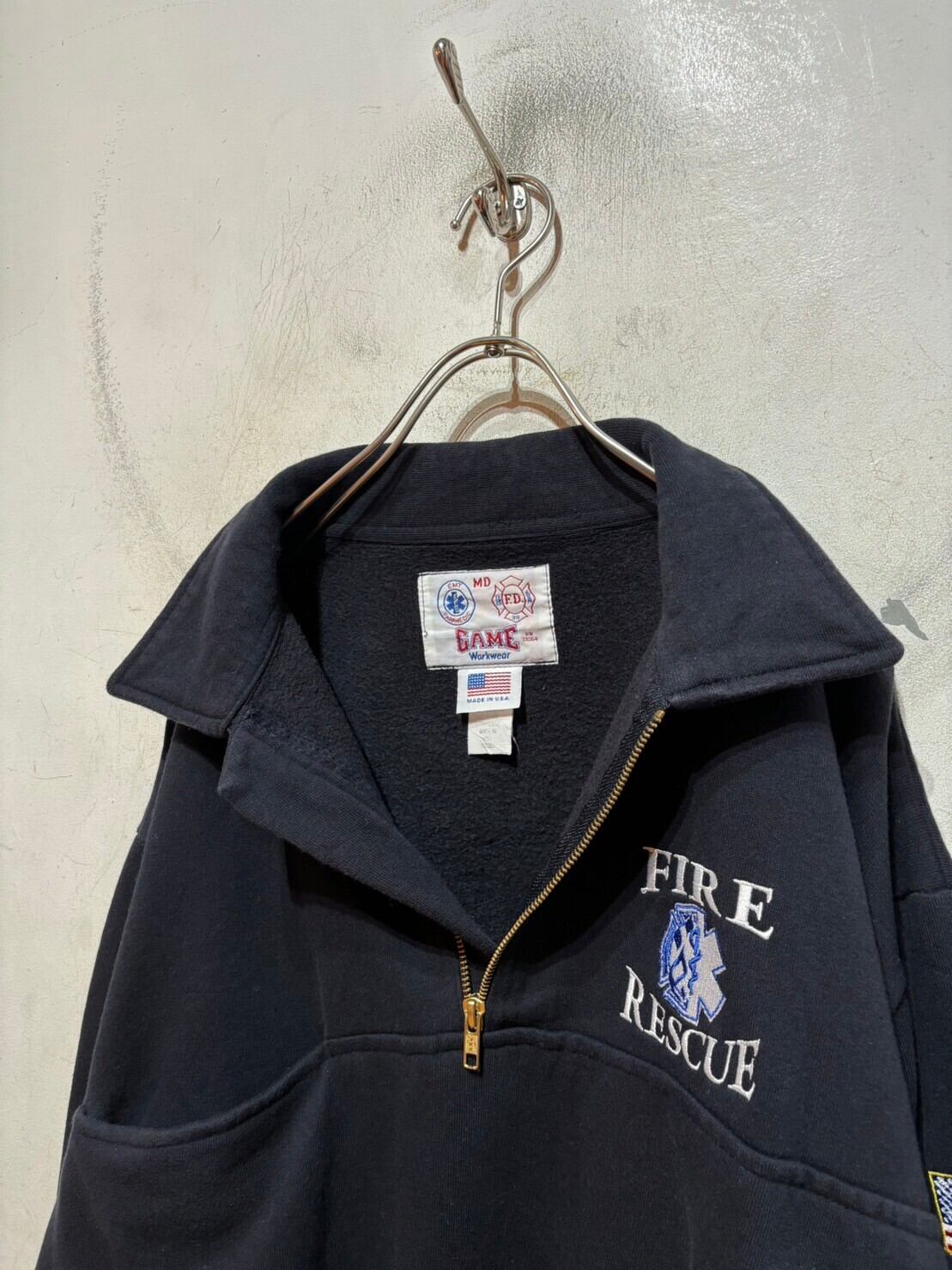 消防隊のハーフジップスウェットです