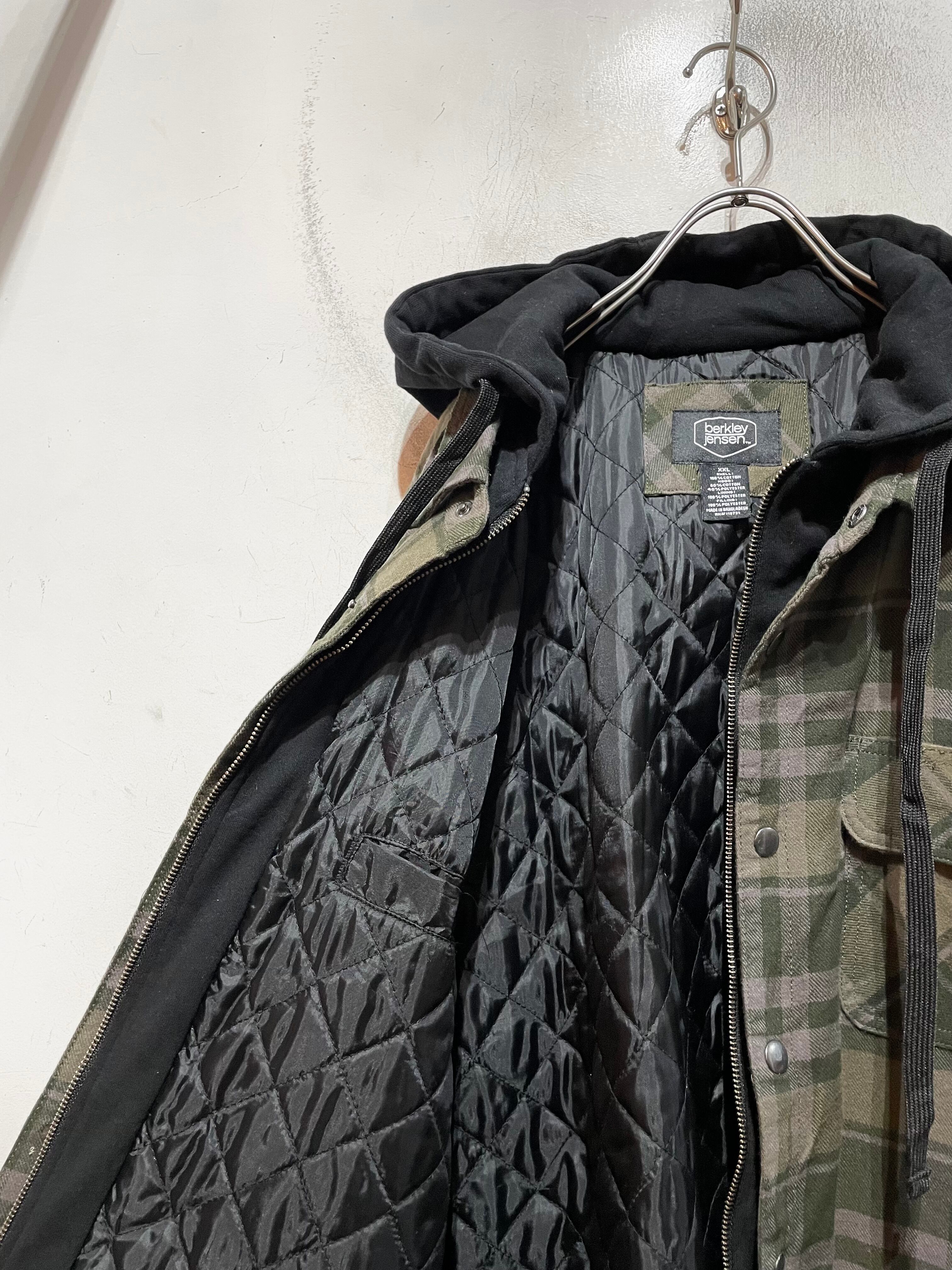 フーディーをフェイクレイヤードしたフランネルジャケットです