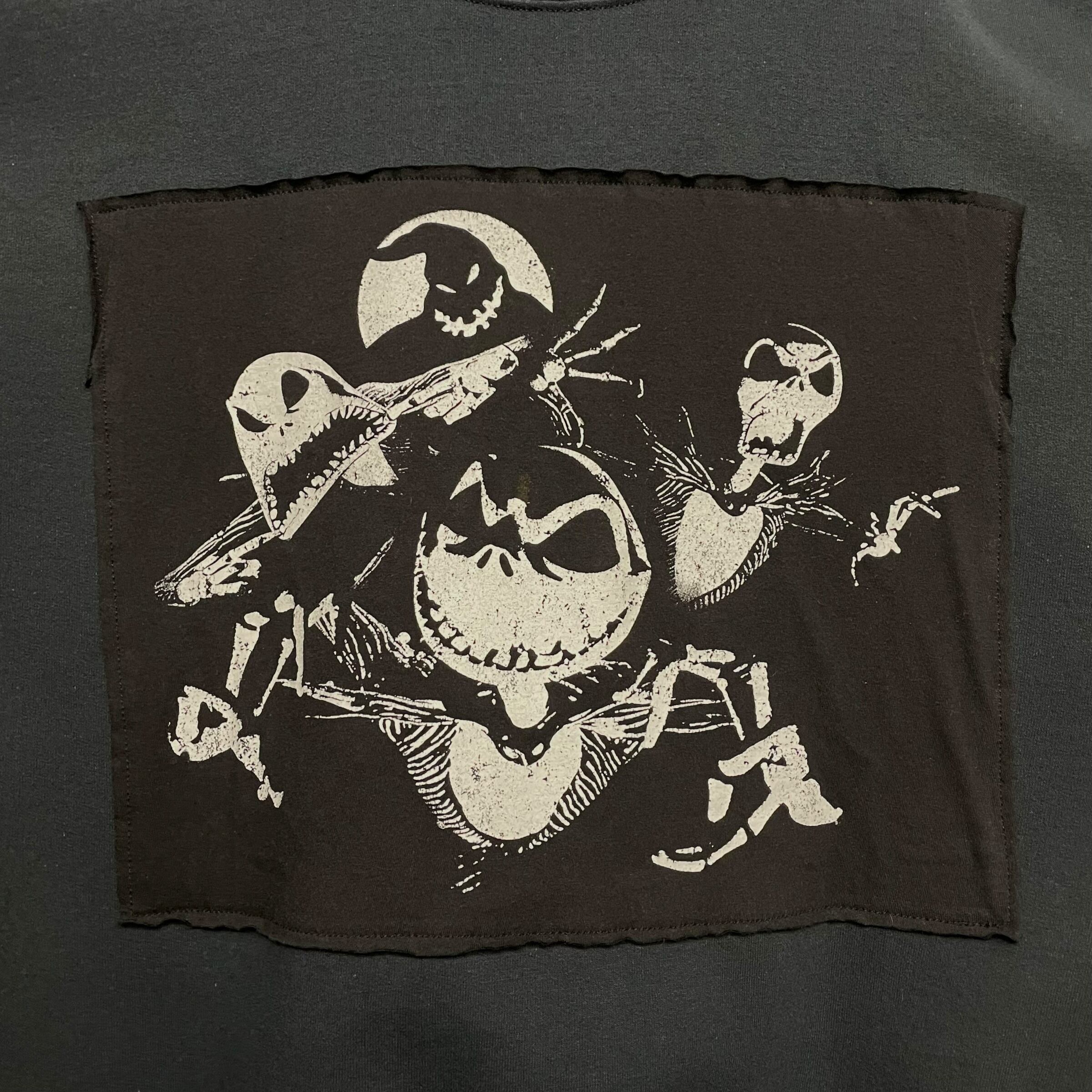 こちらは1993年に公開されたディズニー映画、ナイトメア・ビフォア・クリスマスのプリントを貼り付けたスウェットです