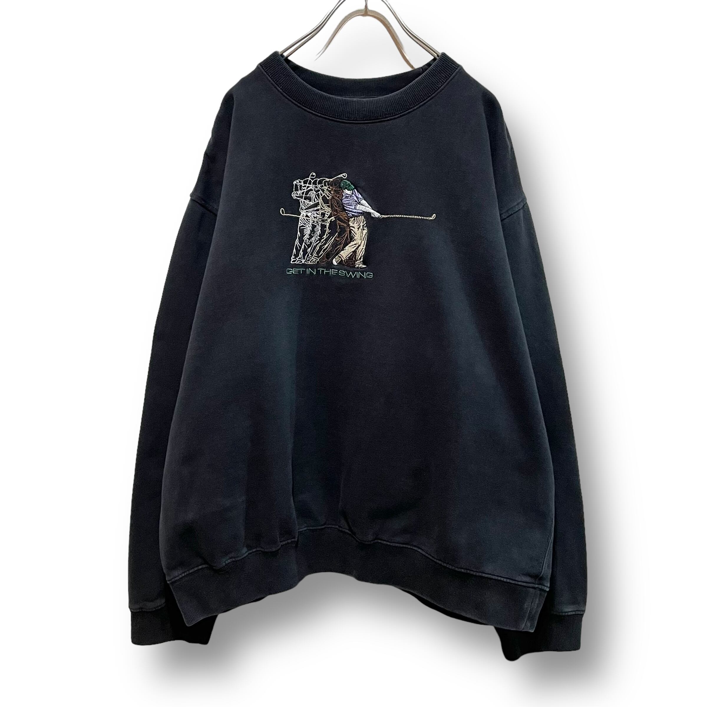 ゴルフのスウィングシーンが連写風に表現された刺繍スウェットです