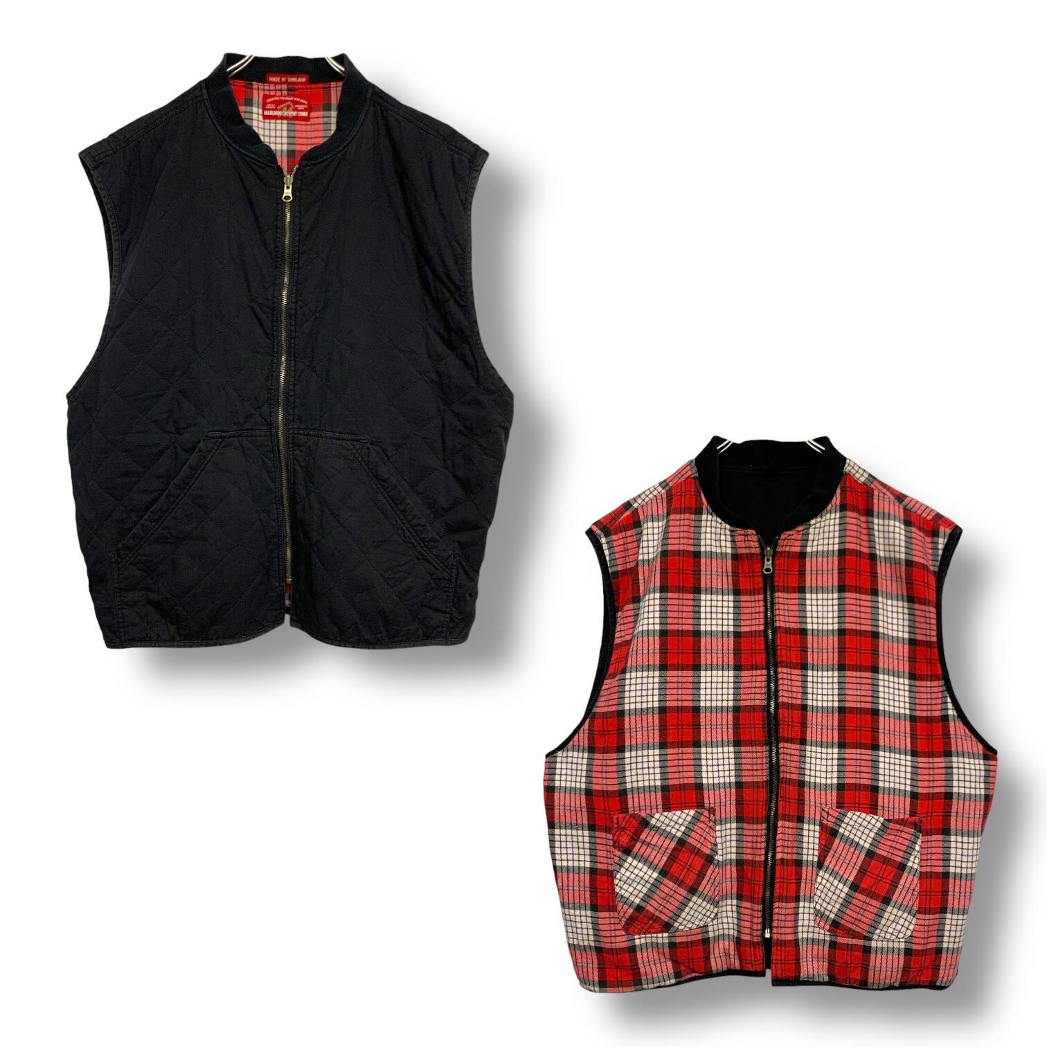 ブラックのキルティングとチェックのフランネル生地のリバーシブルベストです