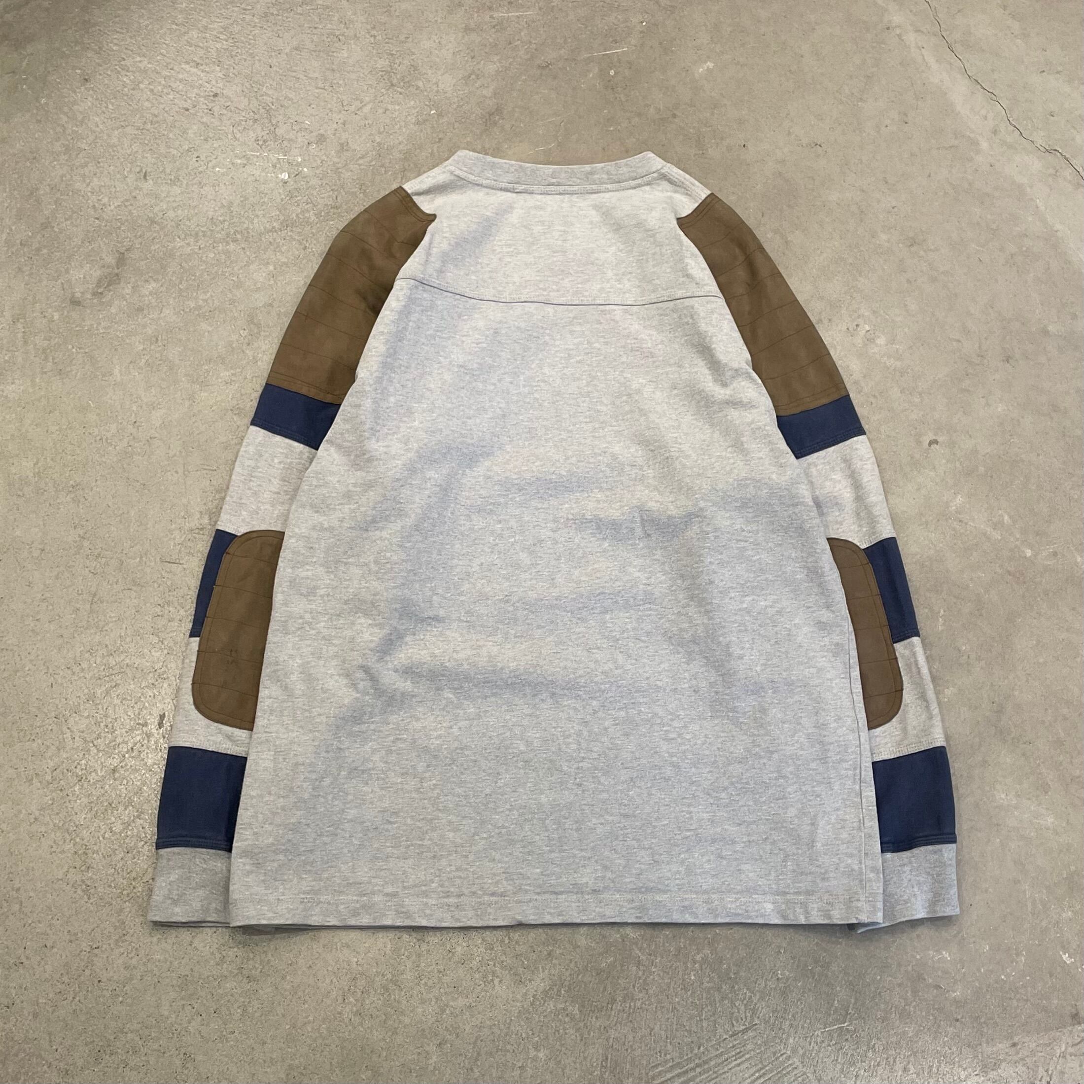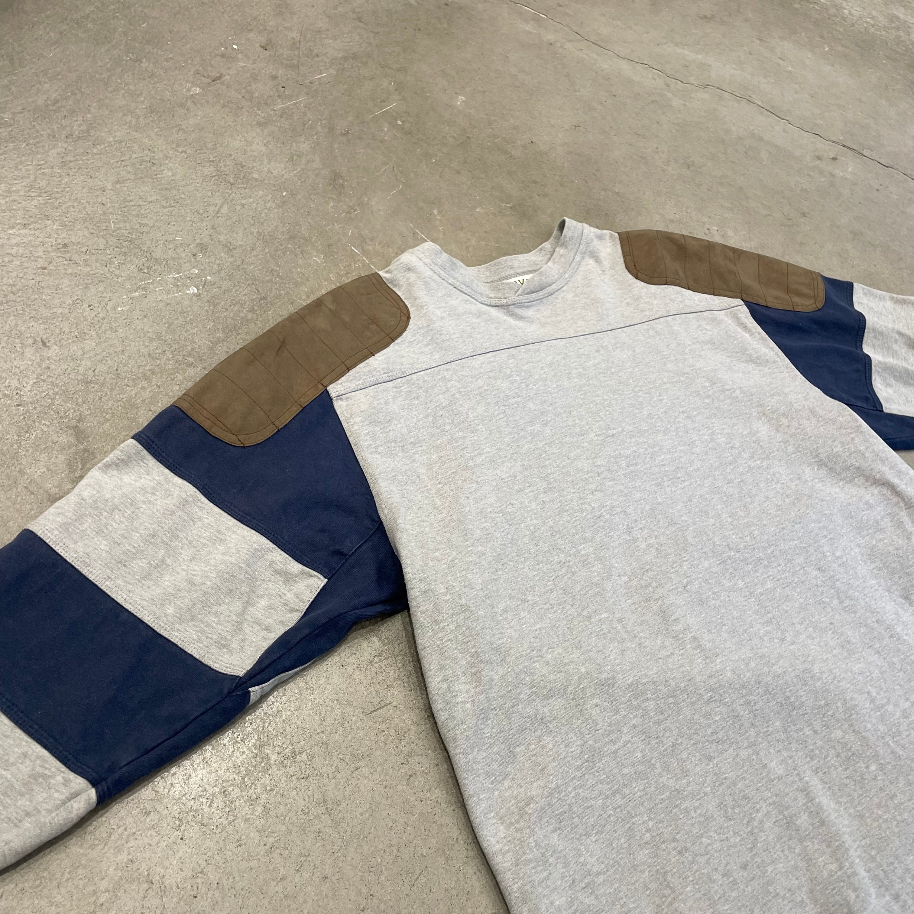 肩×肘のパッチに加え袖がバイカラーに切り替えられた贅沢なロンTです
