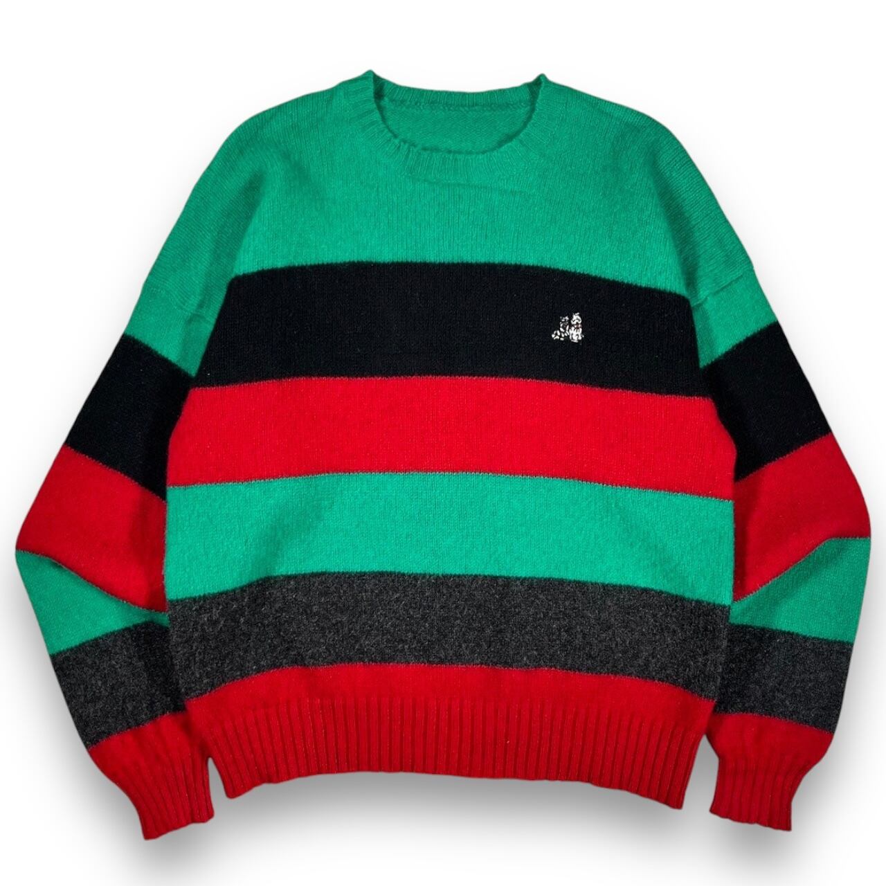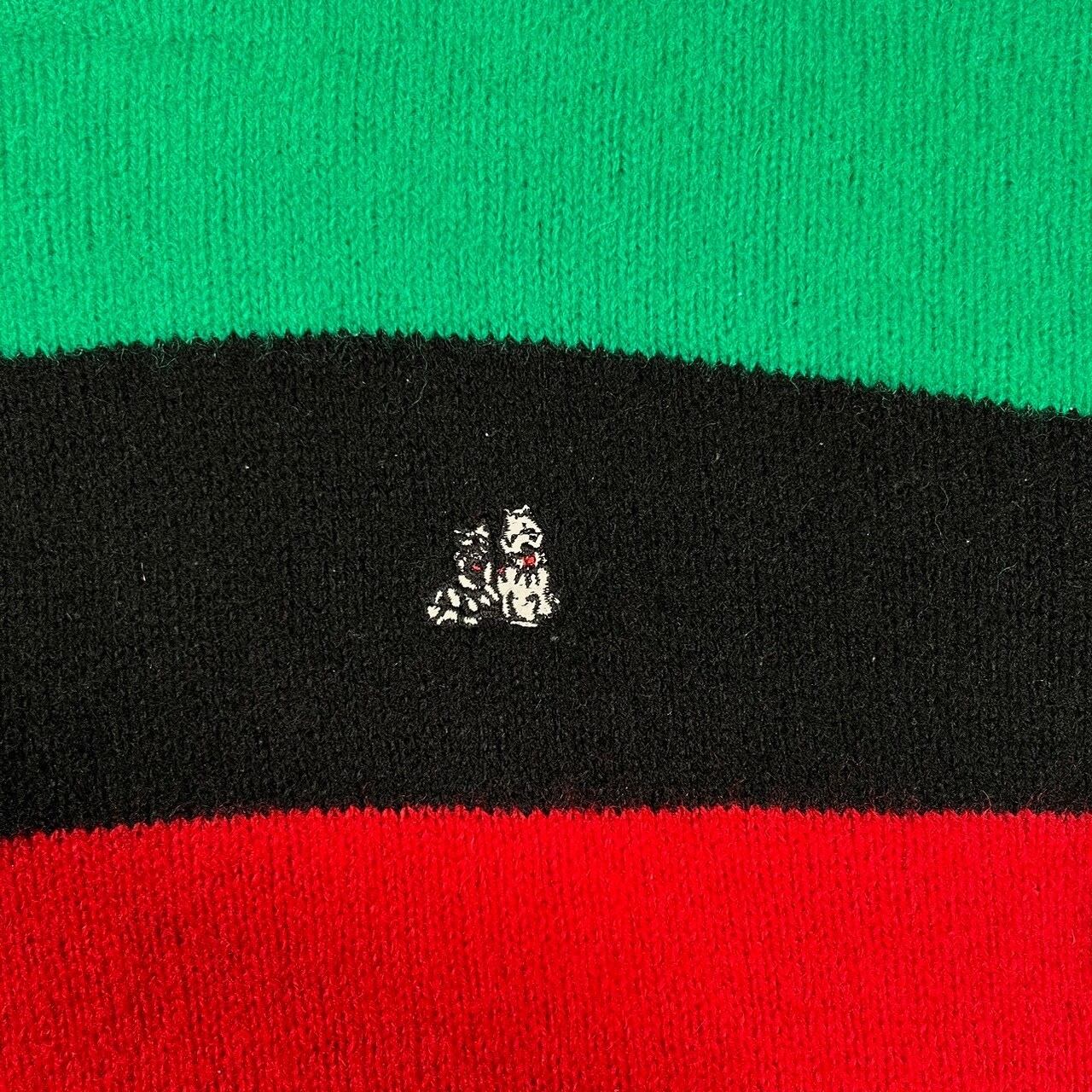 タグ欠損の為ブランドは不明ですが良いカラーリングの太ボーダーに犬のワンポイントが入ったセンスの良い1着です
