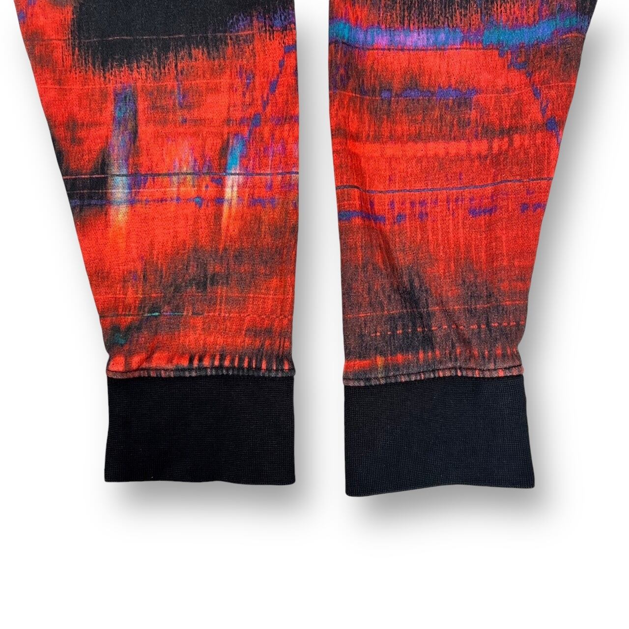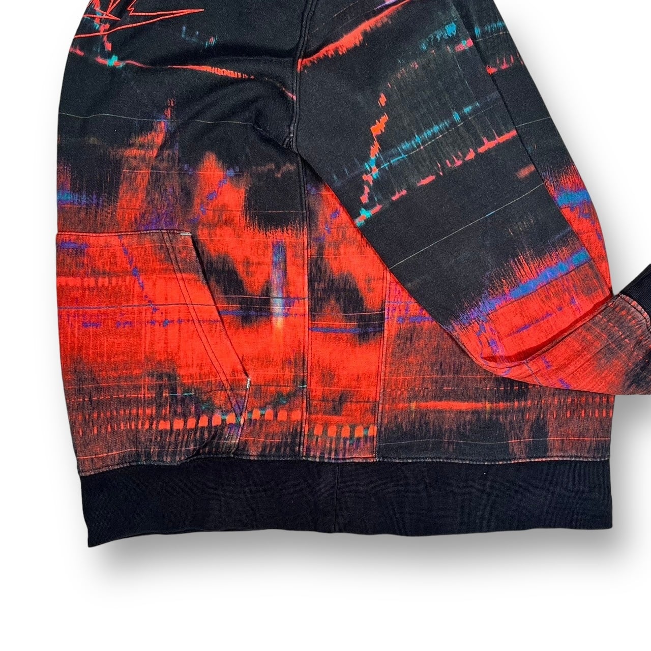 赤やブルー、パープルなどのカラーが入った独特な雰囲気の柄で目を引くデザイン