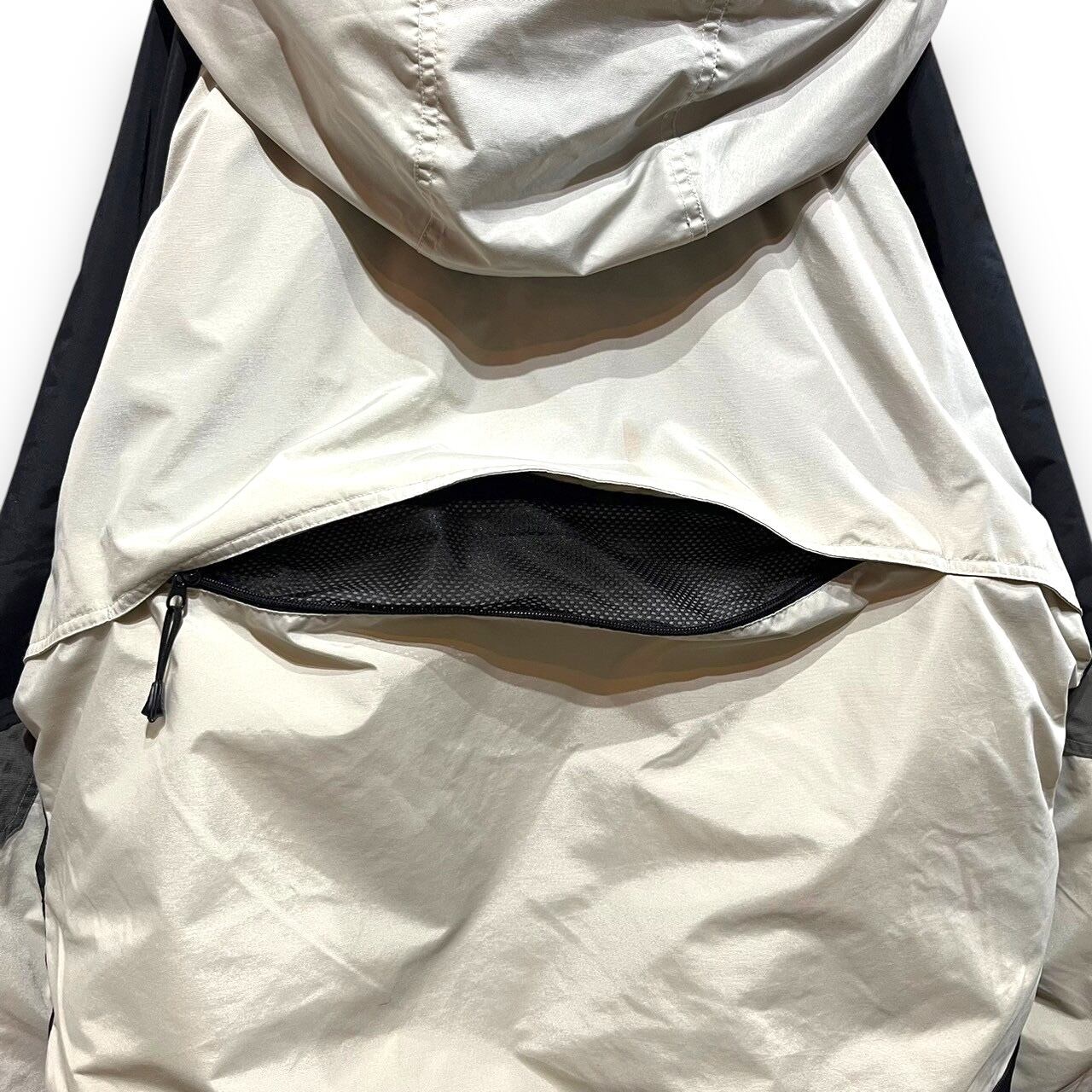 ベンチレーションのジップやバックの大きなポケット、風や雪の侵入を防ぐためのパウダーガードなどギミックの効いた良いデザインです