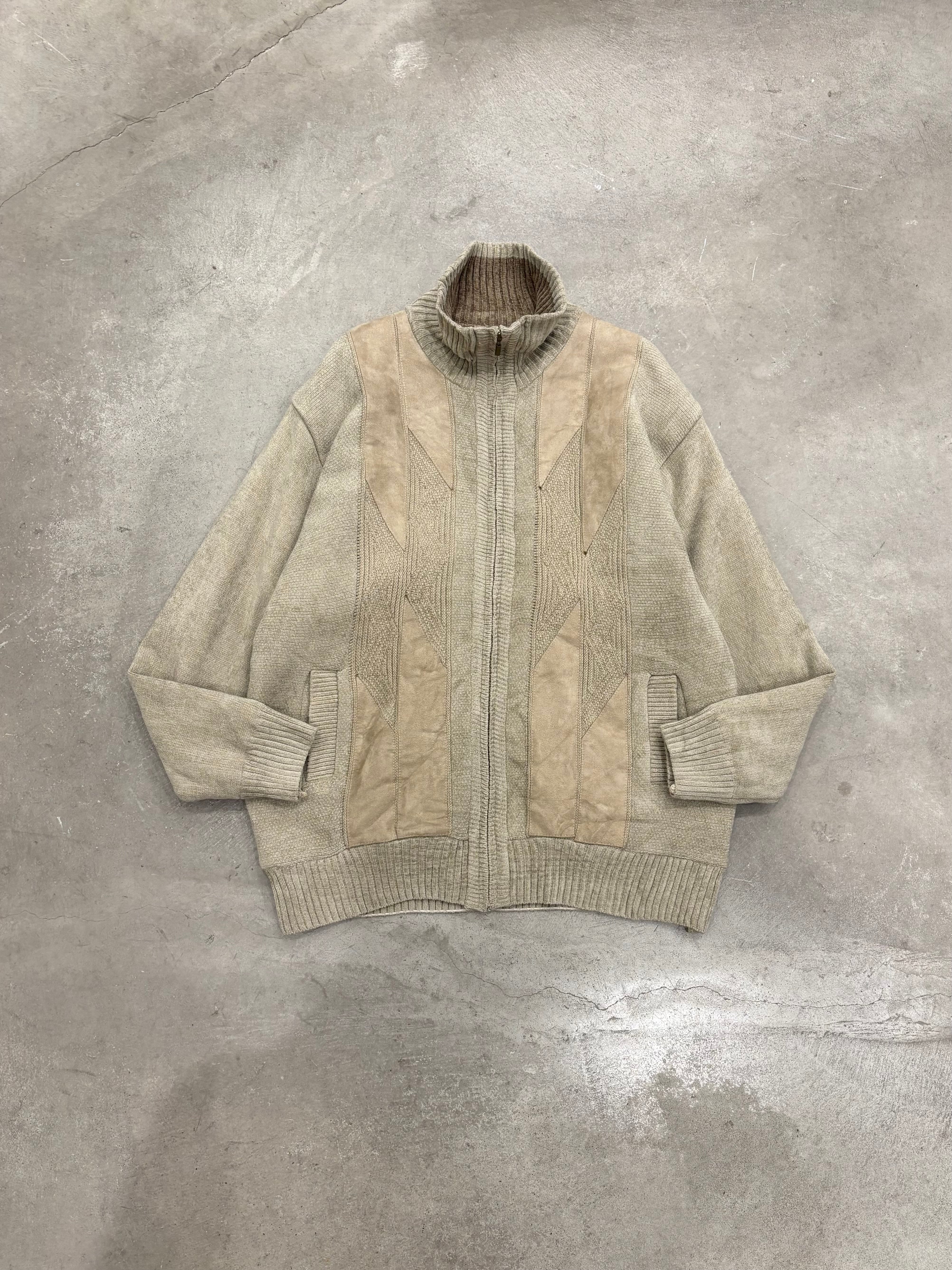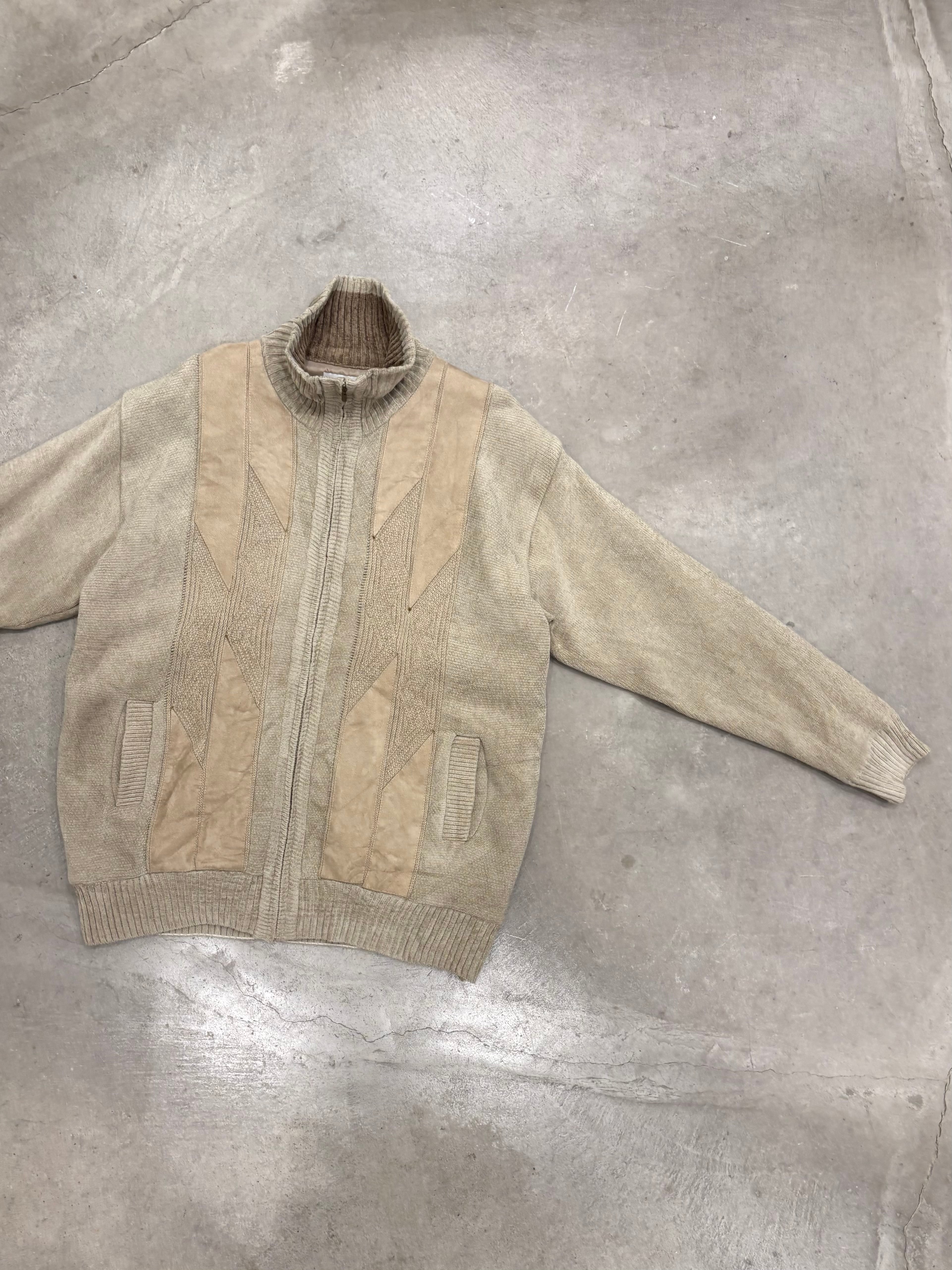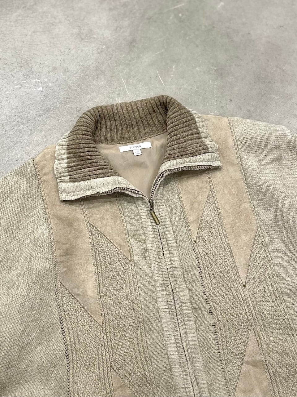 “VISITOR” Fake Suede Pasting Knit Jacket