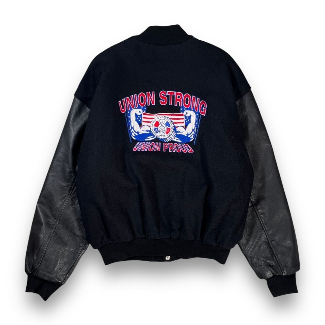 90’s “UNION STRONG” Embroidery Wool×Leather Padded Stadium Jacket Made in USA