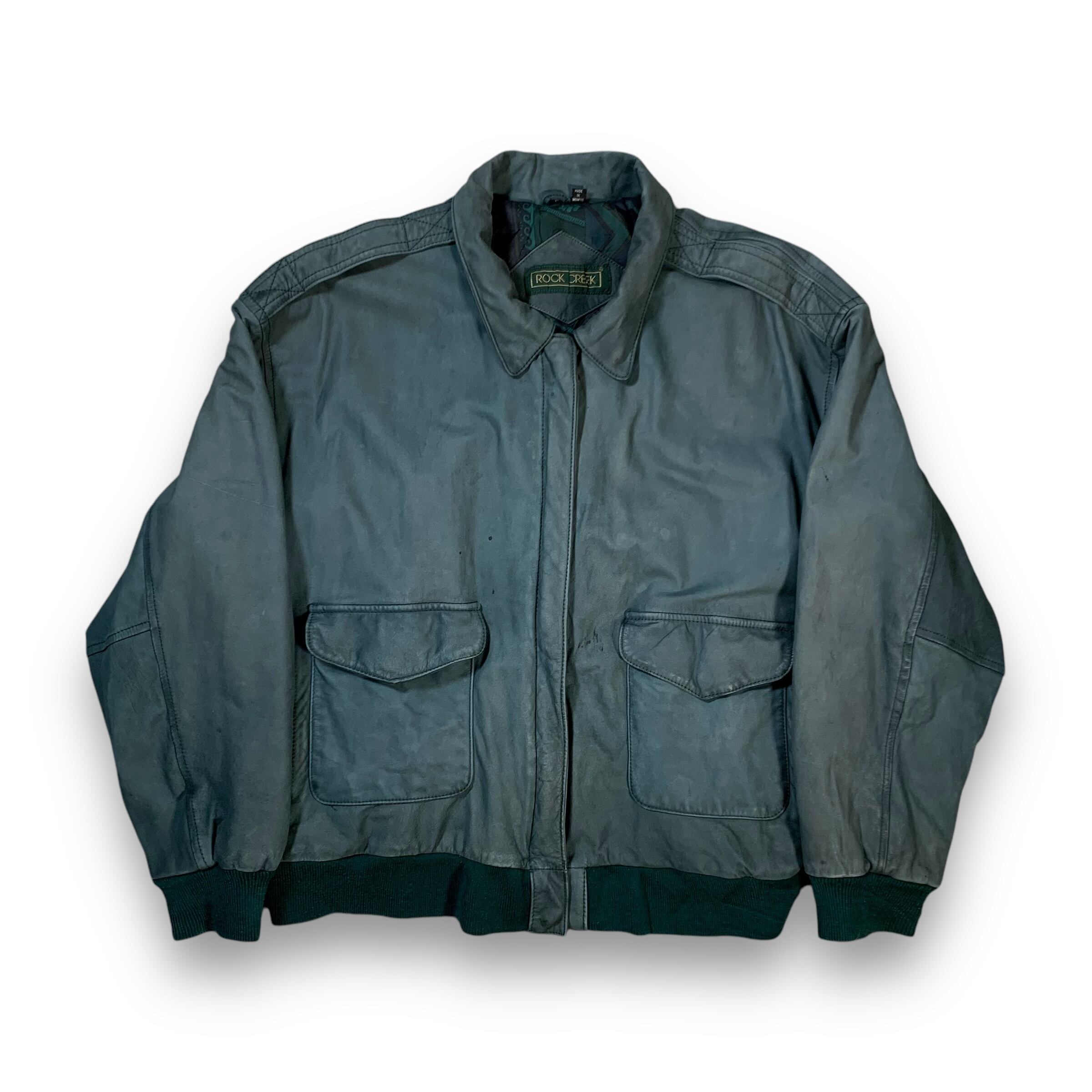 90’s “ROCK CREEK” Padded A-2 type Leather Jacket GREEN