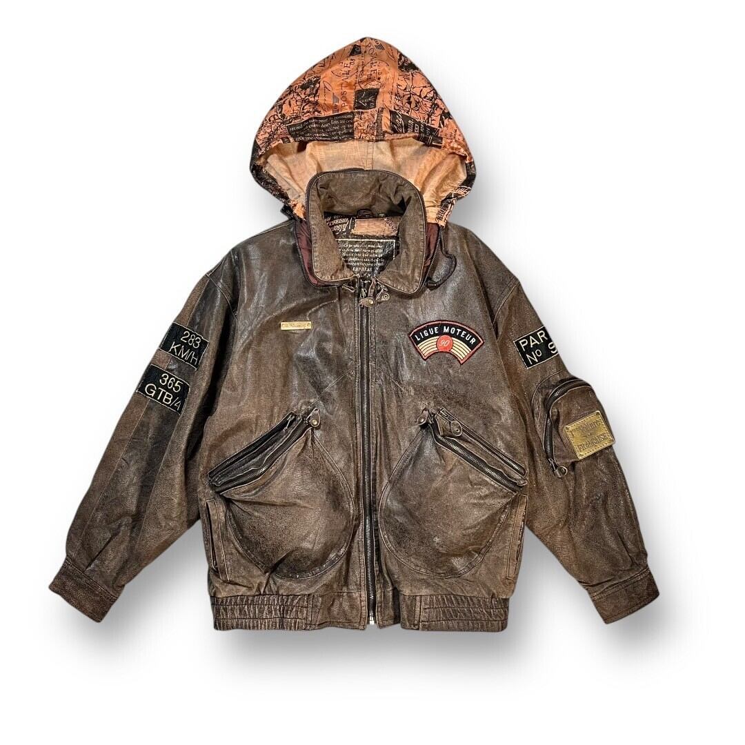 90’s “EXPRESS” Padded Military Motif Leather Jacket