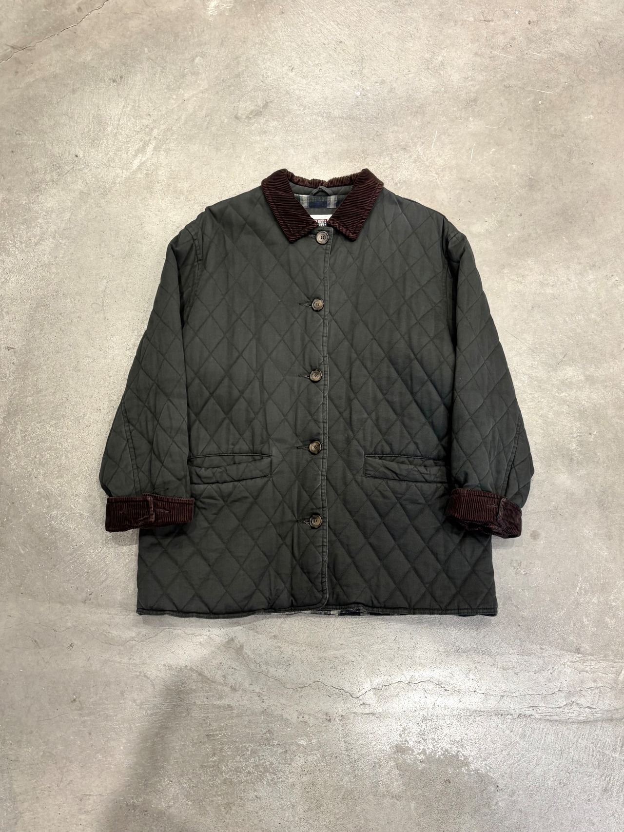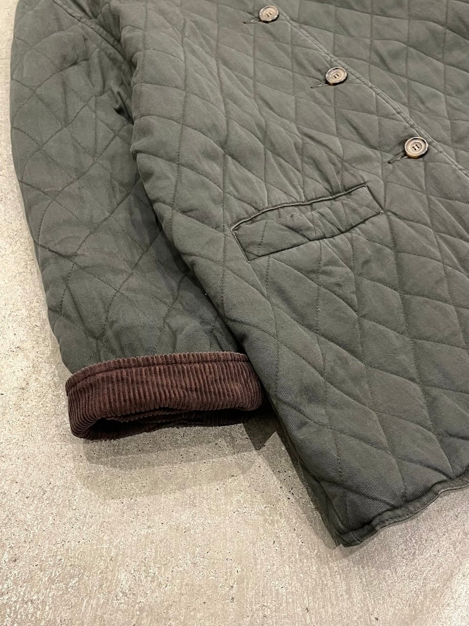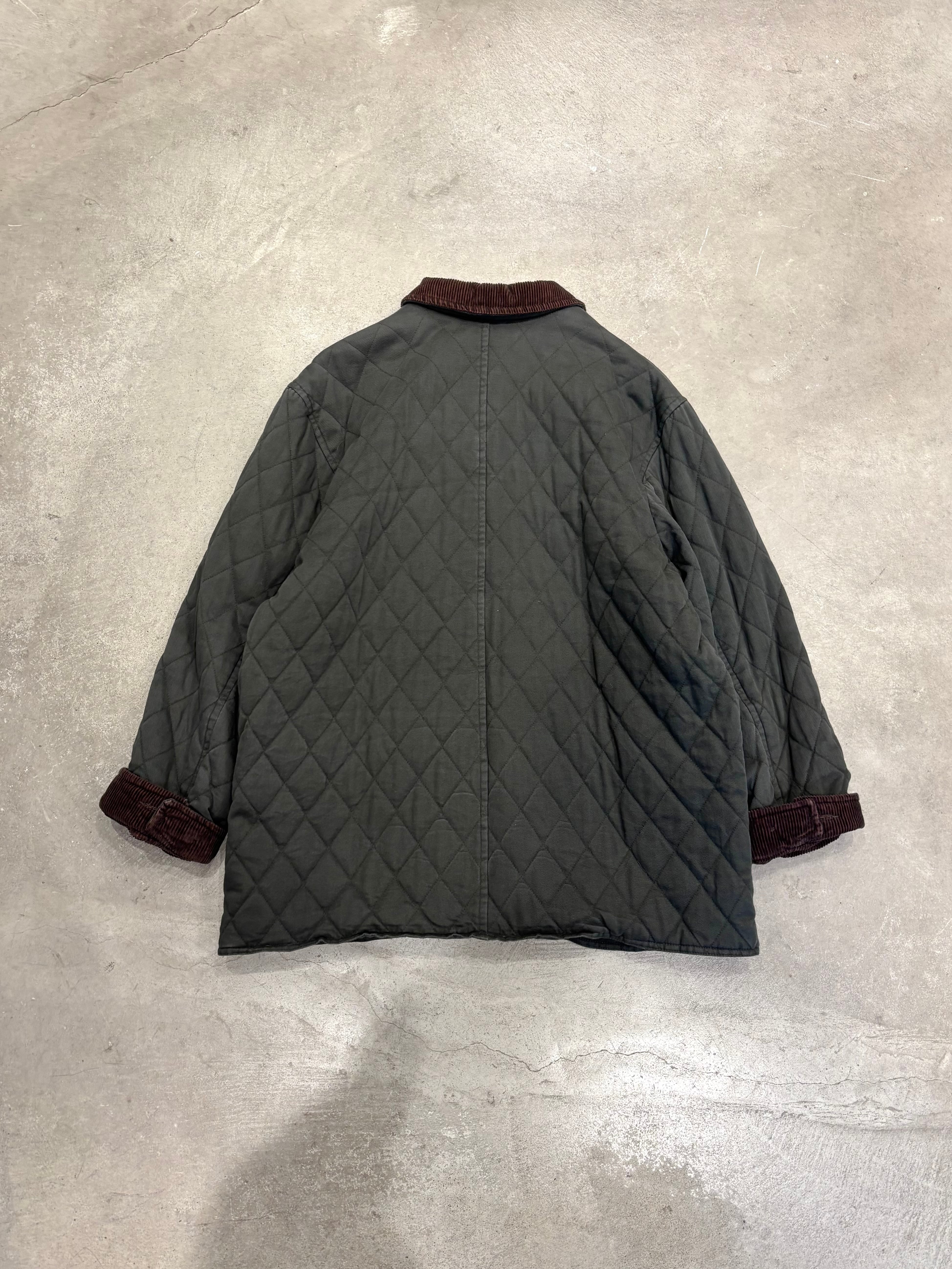 襟と袖裏がコーデュロイで切り替えられた気の利いたキルティングジャケット