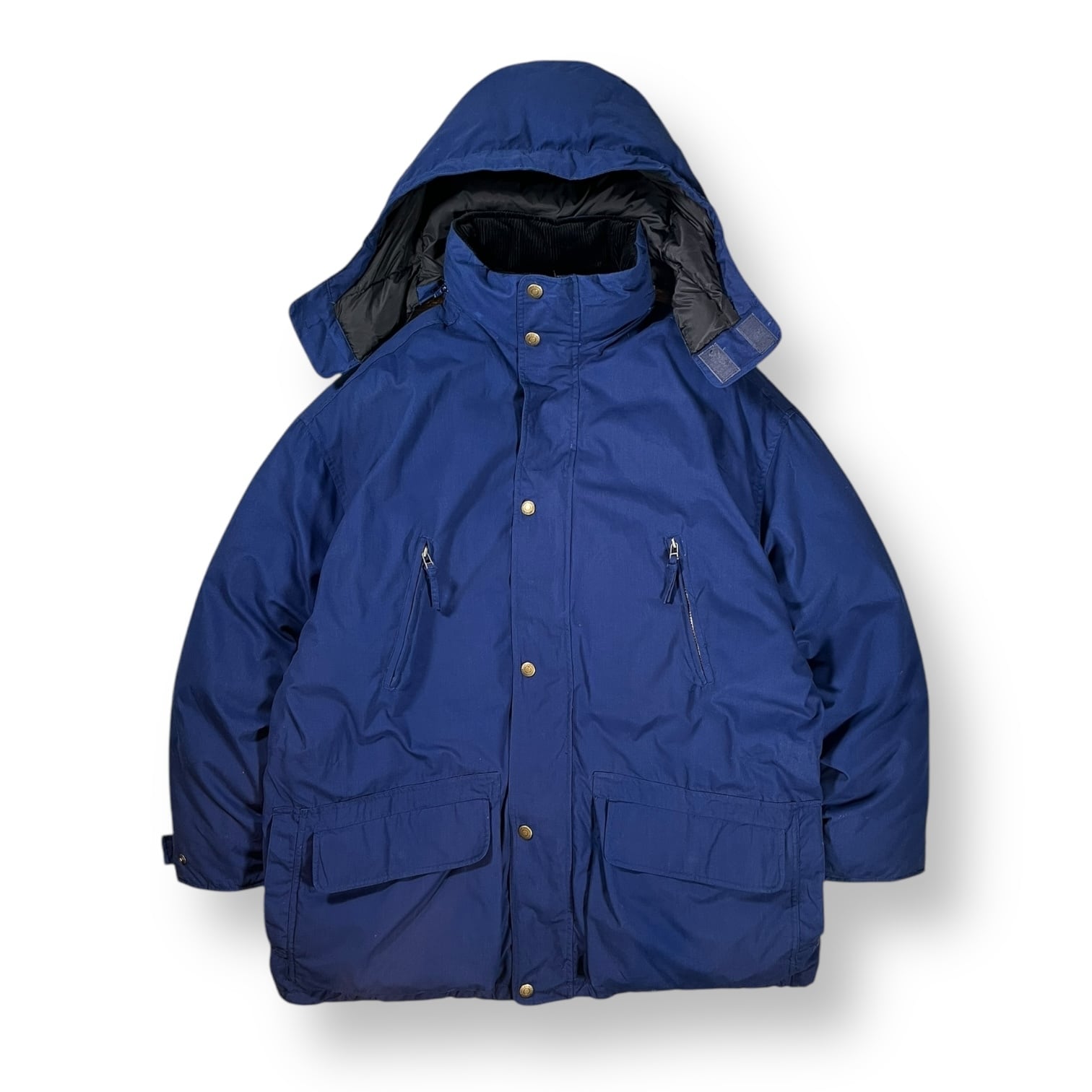 襟裏地にはブラックのコーデュロイ生地が取り付けられ脱着可能なダウンフードも付くクオリティの高い1枚
